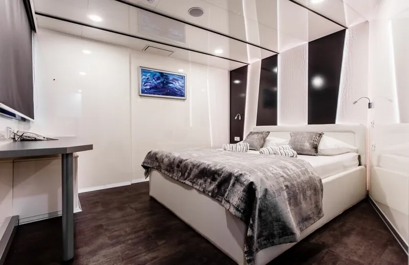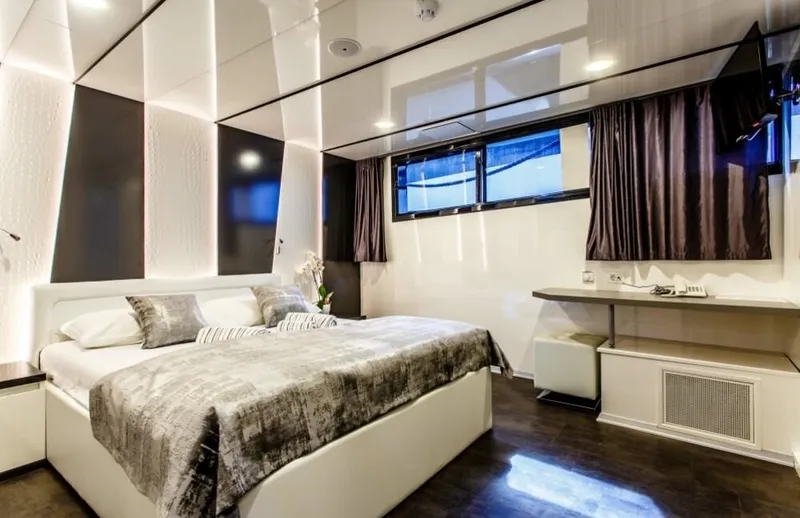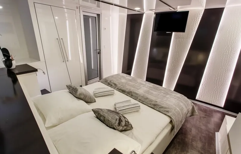 Due to its versatile cabin layout, this modern mini cruiser can accommodate up to 36 charter guests in a total of 18 cabins.