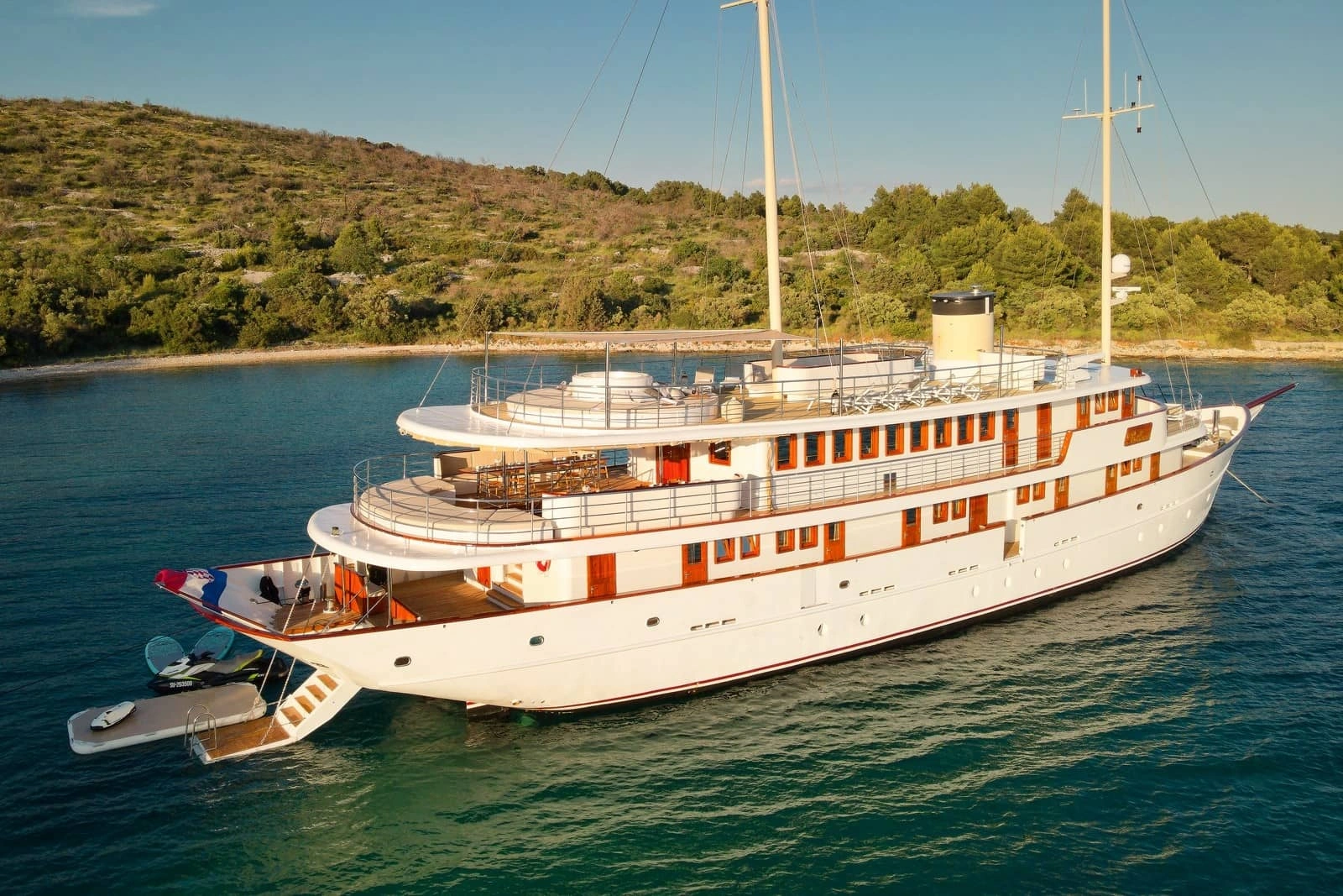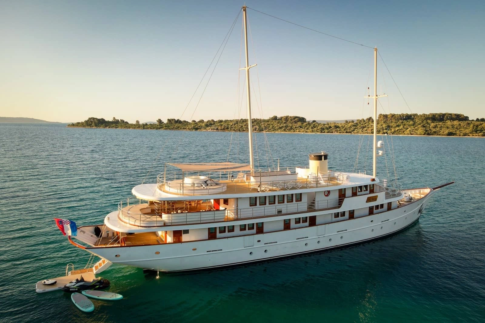 A.P.A. (Advance Provisioning Allowance): is an estimate of 7.000 EUR paid with the balance for covering running costs during the charter: ports and marina fees (the check-in and check-out ports are also considered here), tourist taxes, motorized water sports, national park entrances, custom fees, and charter licenses if chartered outside of Croatia, drinks which are not included in beverage packages, and anything else that guests might need while on charter during the week. If the A.P.A. does not cover the complete costs, the Charterer will pay the remaining amount on board in cash.