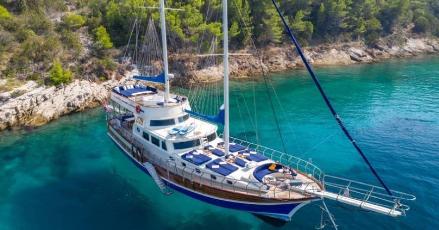 Gulet Charter Croatia - gulets for cruise Croatia are beautiful wooden cruising yachts available for charter and private cruise on the Adriatic. Gulet rental is one of the most unique and authentic ways to experience the cruising holidays in Croatia. In fact, very few sailing experiences can be compared to that of a gulet charter, offering you a marvelous blend of modern-day comforts and the charms of tradition. Explore the sun-soaked beaches of the magnificent Adriatic coast or go island-hopping around the gorgeous Croatian islands in total privacy and style. Depending on the number of guests and your preferences, you can choose between 3 to 8 cabin gulets, providing accommodation for up to 16 charter guests. Our wide selection of cruising gulets for charter in Croatia will help you find a sailing gulet that fits your needs and budget and matches your ideal Croatian gulet cruise. Hand-crafted of mahogany, pine and teak, gulets possess a refined elegance that sets them apart from standard charter yachts. Encompassing the most indulgent cruising experiences, gulets offer the perfect cruising holiday amidst Croatia’s exceptional scenery and intriguing cultural sites. Spacious sun decks, air-conditioned en suite cabins and comfortable lounge and living areas make gulets a quintessential choice for private cruising holidays with family or friends as well as corporate cruises, incentive programs and other special occasions such as weddings or anniversaries. Swimming and sunbathing are the favorite pastimes of guests who opt for a gulet cruise in Croatia. However, there is a variety of water sports equipment available on board as well, from water skis, Jet Ski, canoes to snorkeling and fishing gear. Gulet cruises also entail tailor-made sailing itineraries, which include some of the most compelling cruising destinations in Croatia, such as Split, Dubrovnik and Trogir as well as the breathtaking islands of Hvar, Brac, Vis, Korcula, Mljet and many more. Apart from standard gulet rentals, one-way charters are also available, giving you the opportunity to embark in one port and disembark in another. One-way charter arrangements are an excellent choice for those who wish to have extra time to explore all the intimate harbors and anchorages tucked away on the shores of Dalmatia, Kvarner and Istria. An imminent part of any gulet cruise is the full-time, professional crew, committed to offering an outstanding charter service during the entire course of the cruise. The crew consists of a captain, a chef and a sailor; however, additional crew members may be required on some bigger boats. Since exceptional service is the ultimate goal on gulet cruises, it is important to know that all crew members are carefully selected and have years of previous charter experience. Although constantly at clients’ disposal, the crew have their own sleeping arrangements, enabling guests to enjoy their privacy while on board. Consistent with its reputation for fine onboard dining experiences, gulet charter in Croatia gives you the possibility to relish the indigenous Dalmatian recipes infused with elements of the Mediterranean cuisine and further complemented with wonderful regional wines. With a patchwork of fascinating landscapes, remnants of ancient civilization and harbors of unbridled charms, gulet cruises in Croatia provide infinite possibilities for an unforgettable charter vacation.