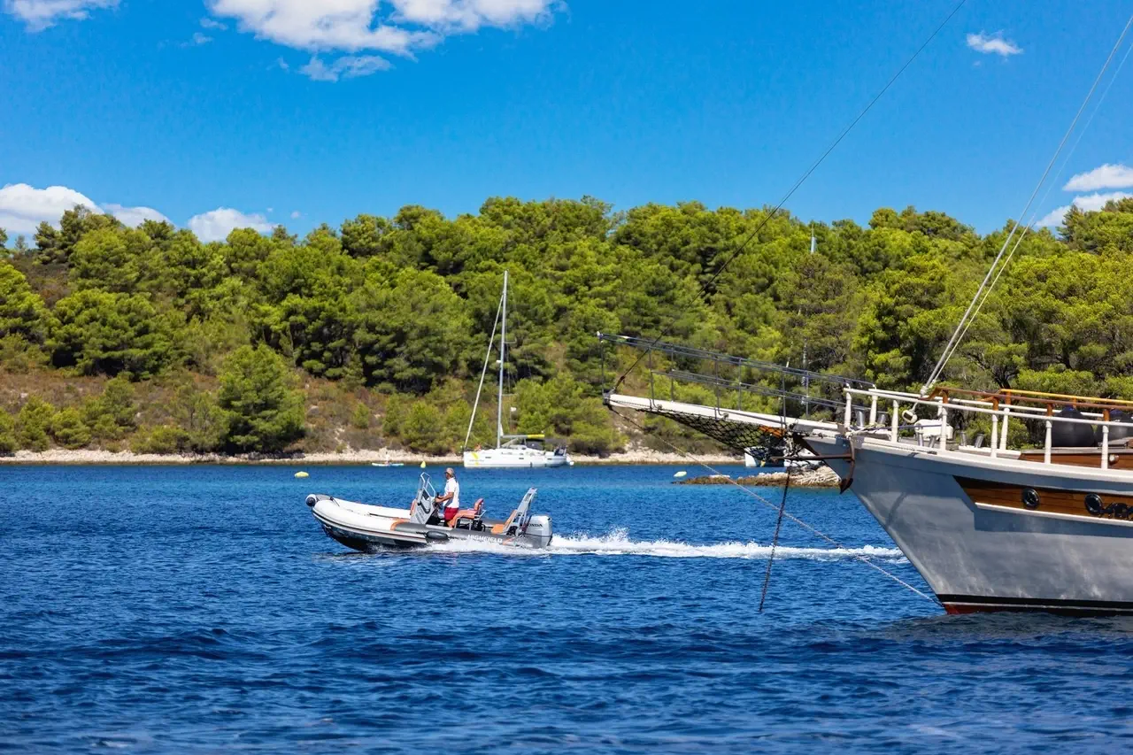 Completely refurbished, Aborda accommodates up to 16 guests in 4 double and 4 twin cabins, each one with en suite facilities and air conditioning. The interior salon contains a big dining table ideal for socializing with family and friends, a comfortable sitting area, TV, DVD player, CD and Wi-Fi, while the outdoor decks are perfect for sunbathing and other leisure activities such as fishing, snorkeling, waterskiing and kayaking. Besides a standard sailing itinerary, cruising aboard a stunning gulet like this one gives you the possibility to enjoy many different complementary programs such as fishing competitions, wine tasting sessions, cruising through uninhabited areas and national parks, scuba diving cruises, overcoming the basic sailing skills, biking tours, triathlon competitions or visiting lighthouses. Suitable also for corporate cruises, gulet Aborda provides a very professional and peaceful atmosphere, contrasting with the superb beauty of the Adriatic. The crew on board is very carefully selected and is made up of 4 members, each one contributing to making your gulet cruise as pleasant as possible. Chartering a gulet like this one, you will be given the opportunity to live the Adriatic in a completely different way by discovering many enticing summer destinations including those that are usually not easily accessible. Cruise the Adriatic coast at your leisure, explore its vibrant culture, discover authentic Mediterranean flavors and get ready for the cruising experience of a lifetime.