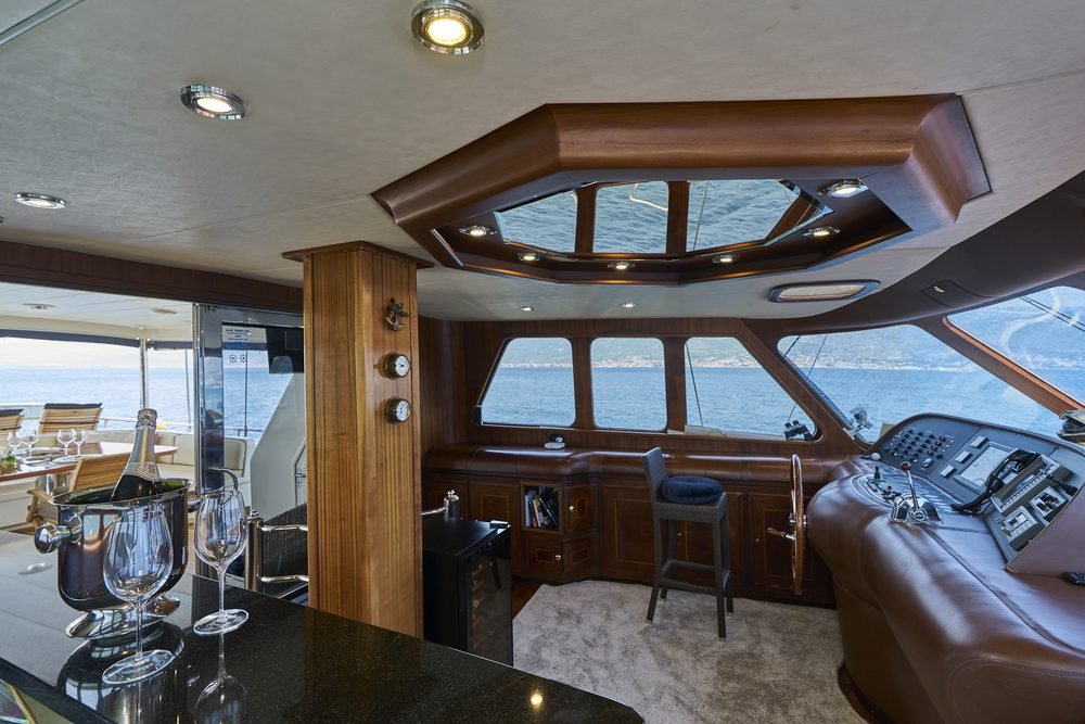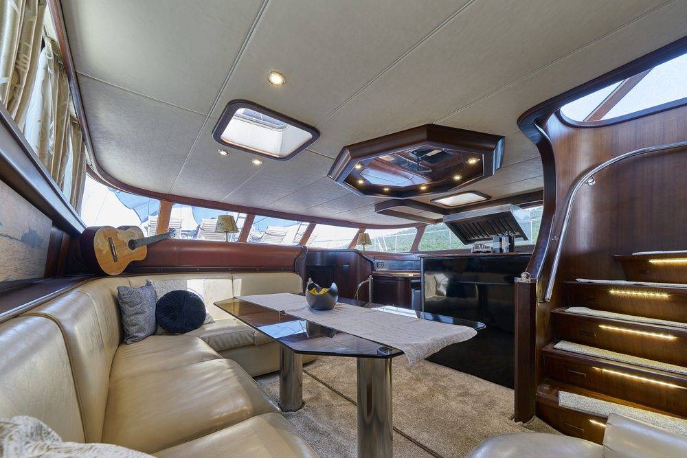 - Fly bridge area with sun pads
