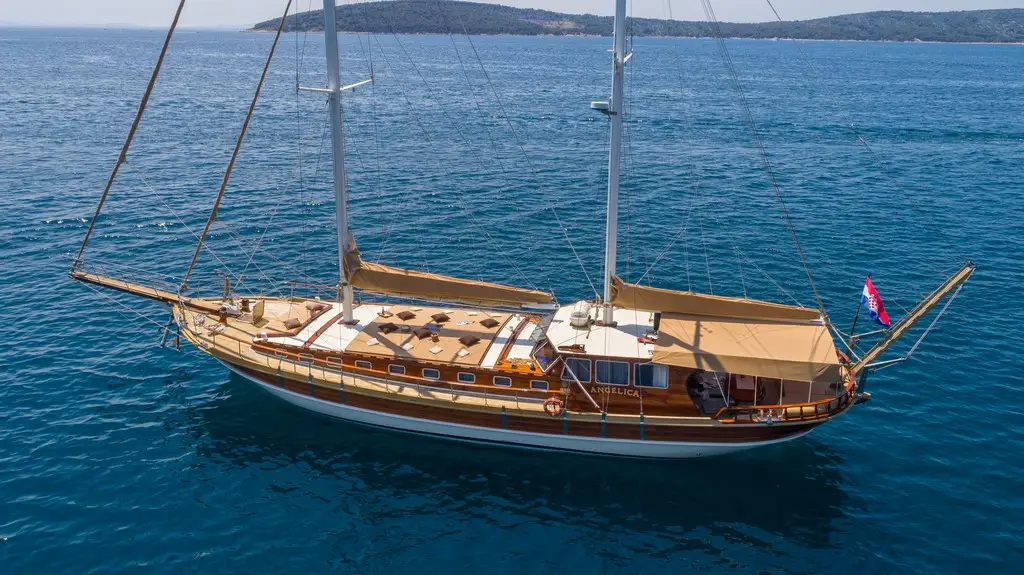 Gulet Angelica is a beautiful charter yacht available for comfortable cruises in Croatia. It was made, mostly of mulberry and pine and fully refurnished to meet the latest norms in boat construction. Angelica boasts comfortable interiors tastefully appointed with mahogany and teak wood, with a lovely salon and a cozy dining room.
