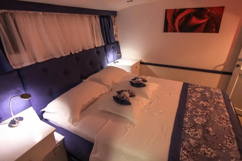 6 x DOUBLE CABIN – Cabin with double bed (160 x 200). Private bathroom with shower and toilet