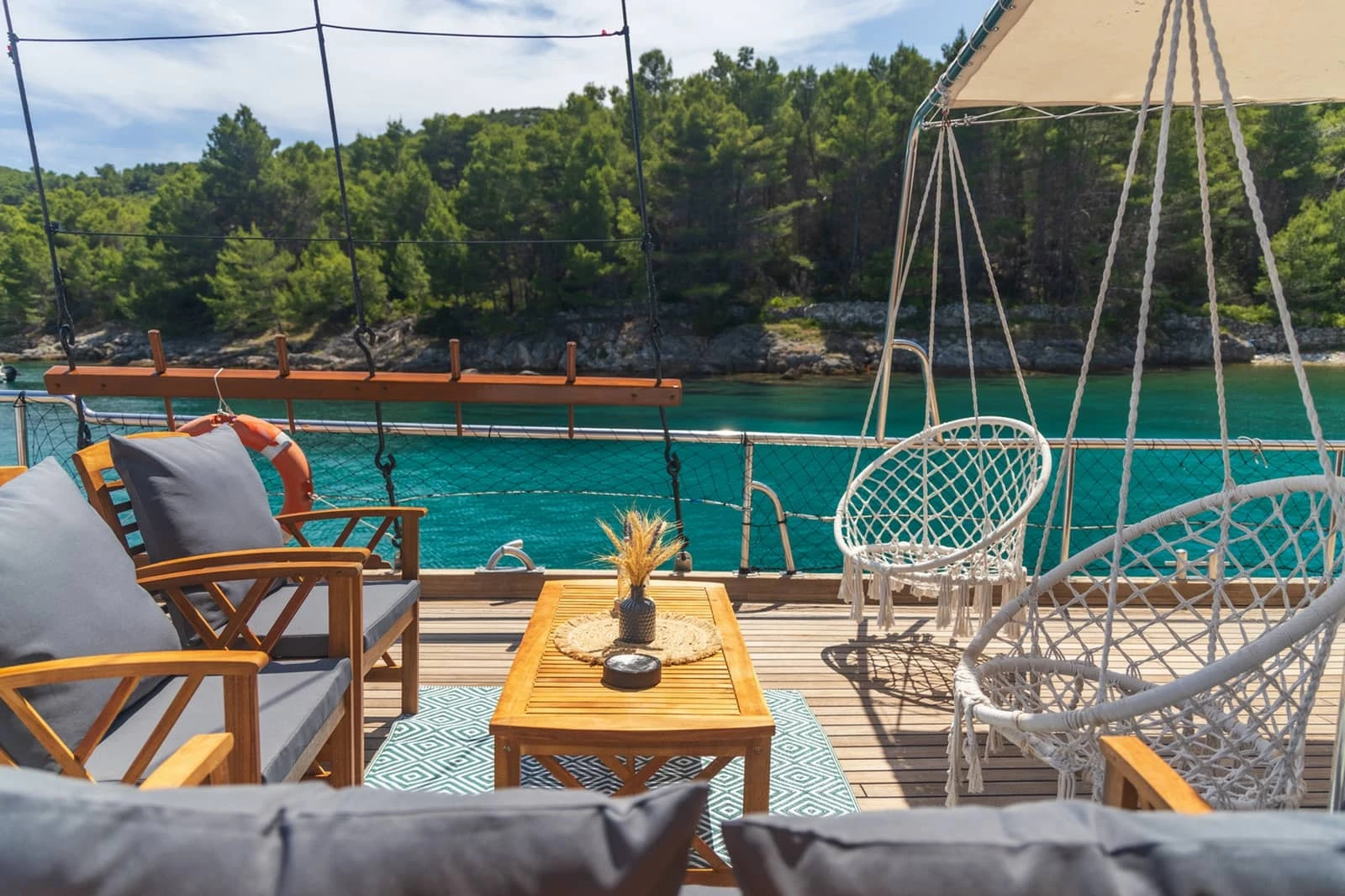 Another important feature of the yacht is a very ample salon with a lot of natural light and tremendous exterior space, perfect for al-fresco dining, sunbathing or other leisure activities. A very competent and attentive crew will welcome you aboard and take care of the navigation, making sure you have a wonderful cruising holiday. Chartering this elegant gulet allows you to select your own cruising route, enjoy a range of fun activities and experience the finest culinary creations paired with incredible regional vines. Ideal both for a lovely family sailing holiday or a dynamic yacht charter vacation with a group of friends, this beautiful gulet will help you explore the stunning islands and destinations of the Adriatic.