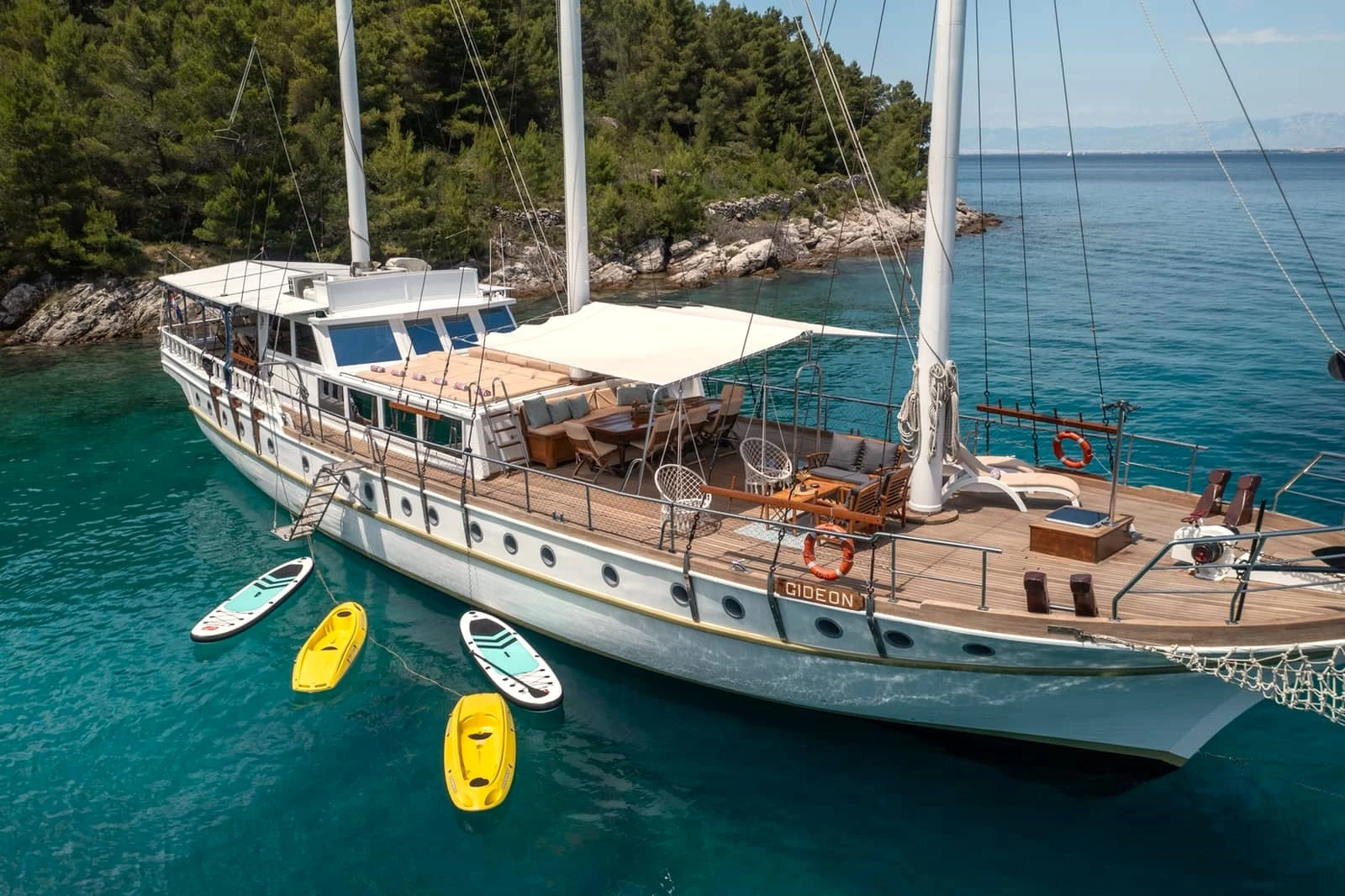Gulet Gideon is one of the largest charter gulets in Croatia, providing a relaxing and pleasant cruising vacation along the Croatian coast. As a perfect combination of modern interior style and a classic exterior layout, gulet Gideon consists of 6 double-bed cabins and 2 single-bed cabins with an additional single bed, offering an extremely cozy accommodation for up to 16 passengers. All cabins have private en suite facilities and air-conditioning.