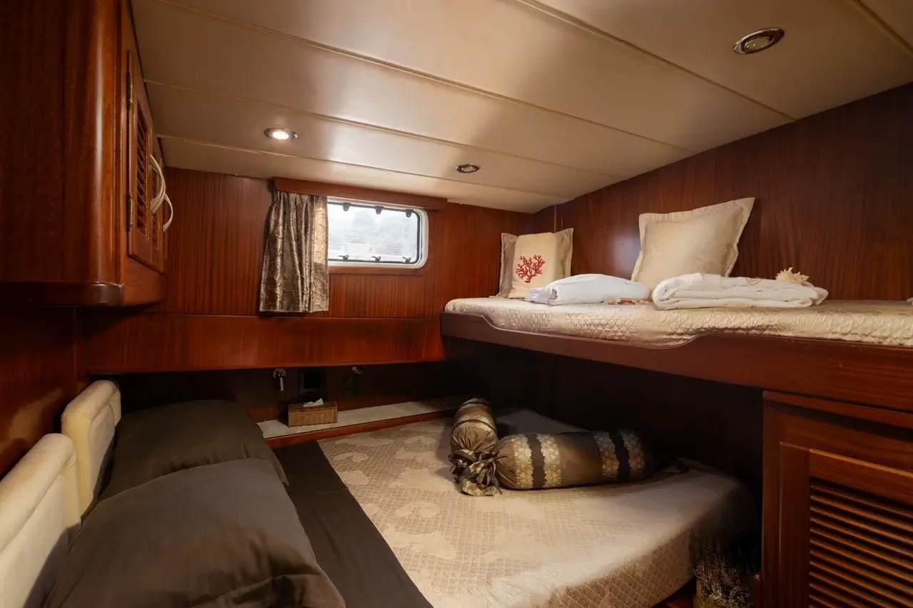 - 4 cabins (master cabin, two double bed cabins, single bed cabin + one additional bed)