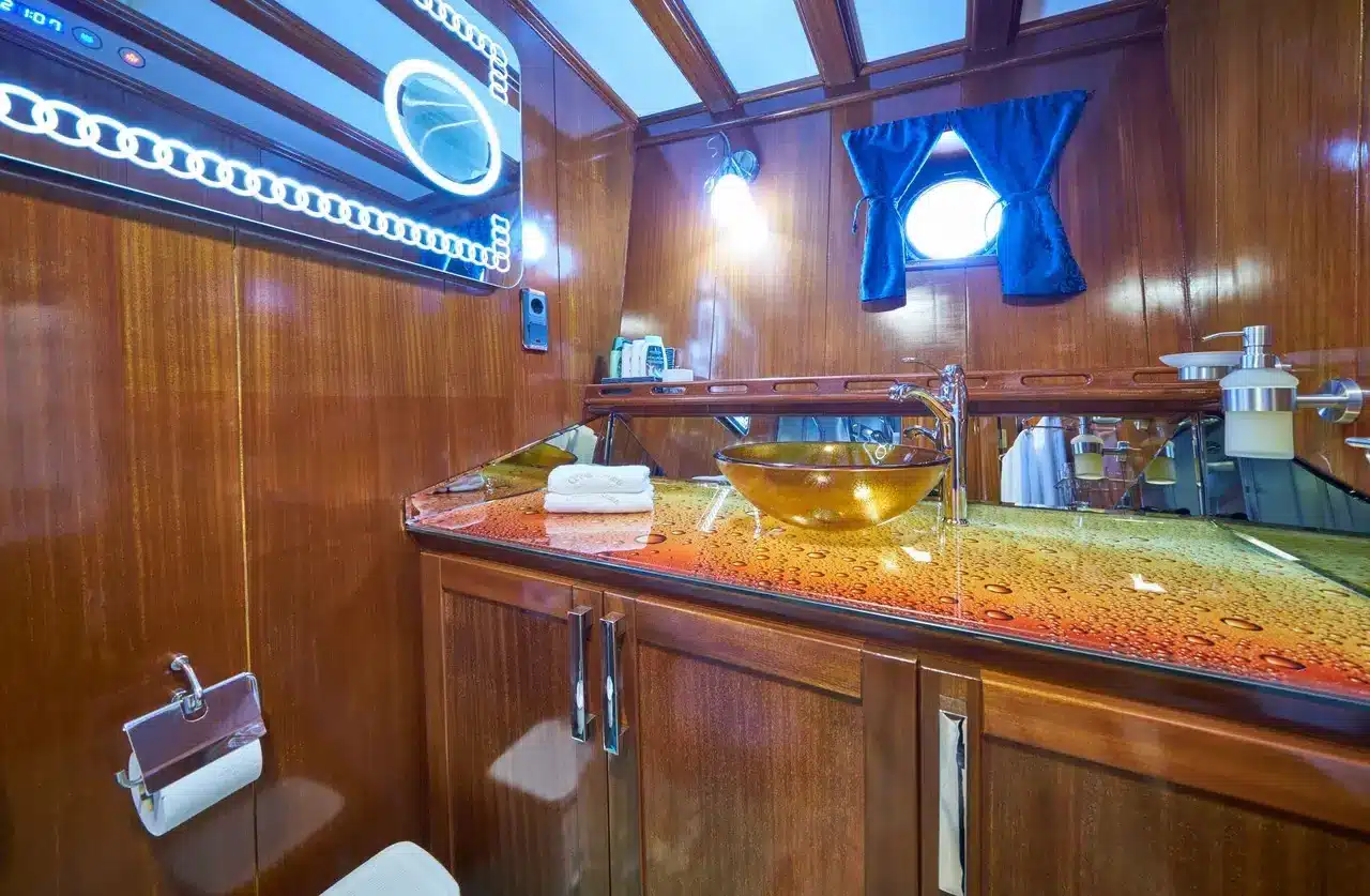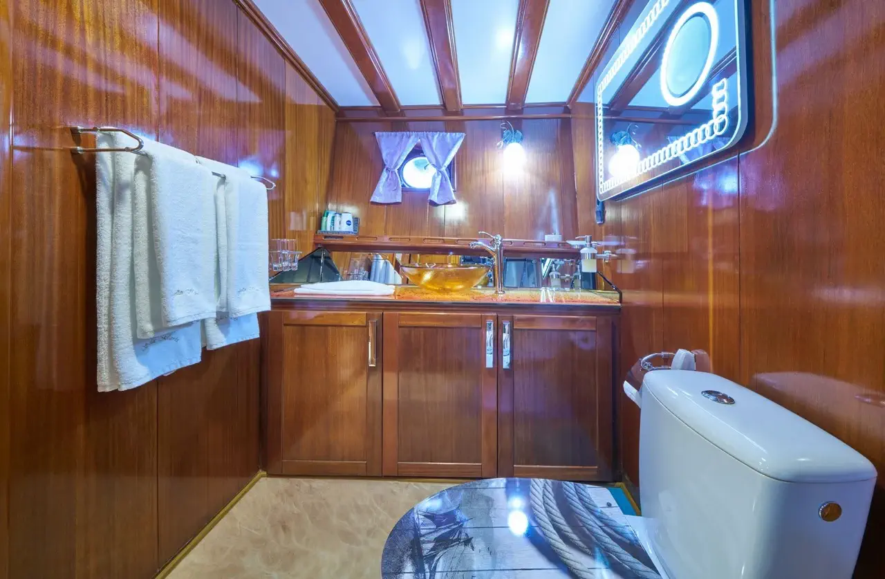 Luxury gulet Stella Maris provides wonderful charter cruises in Croatia. This amazing cruising gulet accommodates up to 16 guests in 6 double bed cabins and 2 twin bed cabins, each with en suite bathroom and air conditioning. Each cabin is well appointed, showing off warm hospitality and soothing ambiance. Combining fine wood and white upholstery, the main saloon is open and pleasantly spacious, with ample amounts of natural light flowing in through large windows. Exterior areas are also very spacious with a huge sun deck and a shaded seating area, perfect for al fresco dining and day to night lounging while enjoying the incredible vistas of the Adriatic coast. Apart from private cruises, special wellness programs may be organized as well to complement your sailing holiday in Croatia. Guests can therefore opt for spring and autumn rejuvenation programs that include a fitness instructor and a masseuse on board, innovative menus and diverse shore activities in order to enrich their charter in Croatia. Gulet Stella Maris also has a range of water toys available on board, offering a great selection of exciting outdoor activities so you can enjoy the countless hours of pure relaxation and fun. To make your cruising adventure truly unique, a professional crew of 6 is committed to making your sailing holiday in Croatia as stress free as possible while you go island hopping or exploring many remarkable sailing areas on the Adriatic.
