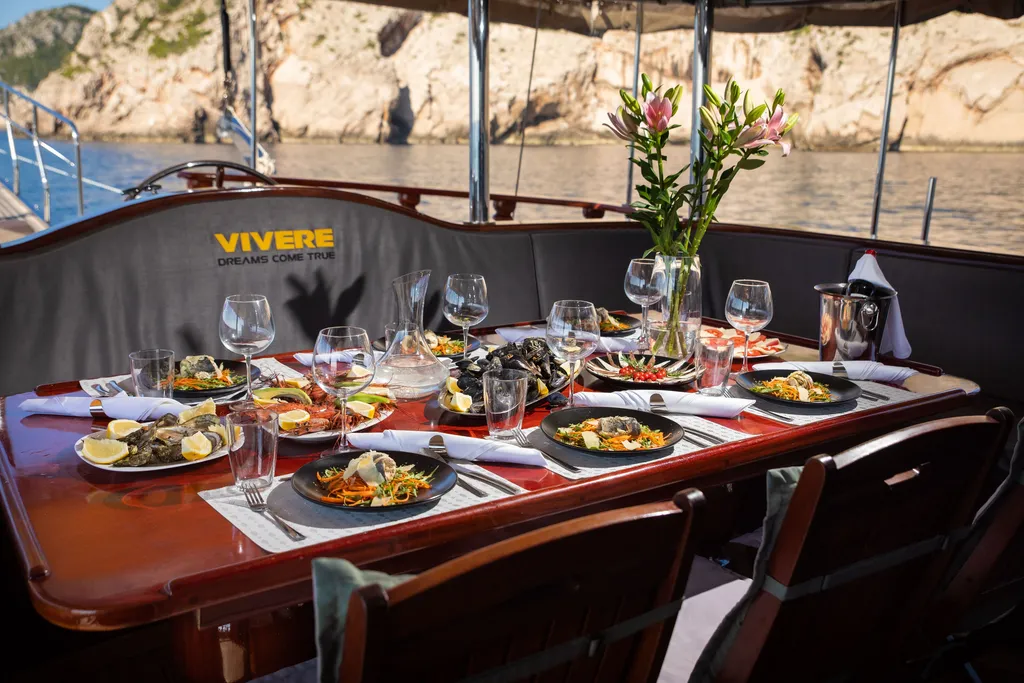 1) Drinks from the yacht’s bar: charged according to the bar price list. Bringing your own drinks on board is not allowed.