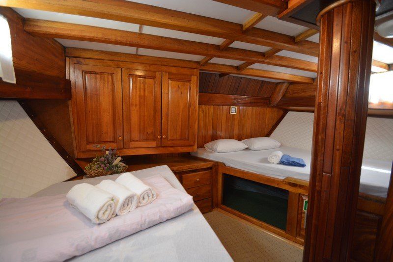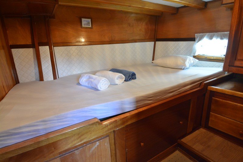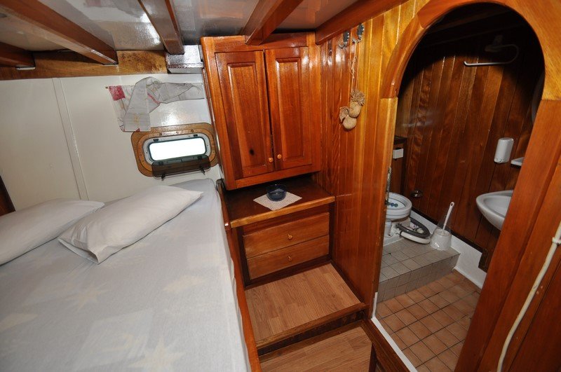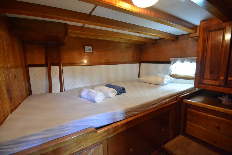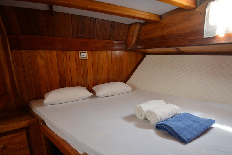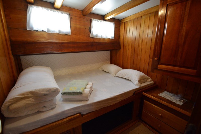 – Cabina con letto matrimoniale (200×140 cm). Bagno privato con doccia/wc