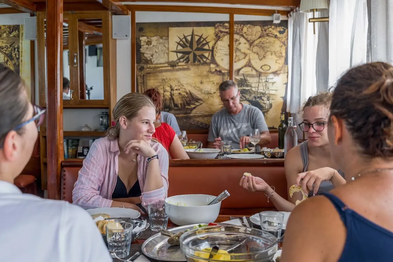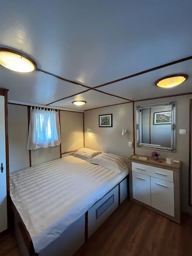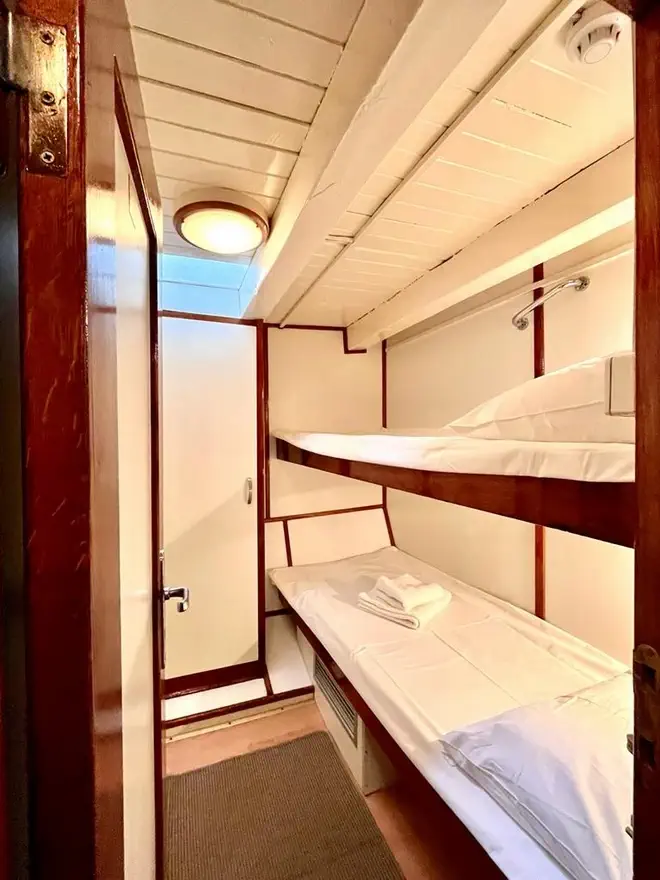 Progettata per accogliere comodamente gruppi numerosi, Elena offre sistemazione per fino a 18 ospiti in 9 cabine ben organizzate. Ogni cabina dispone di bagno privato con doccia e WC, oltre a aria condizionata indipendente, garantendo un soggiorno piacevole durante tutta la crociera.