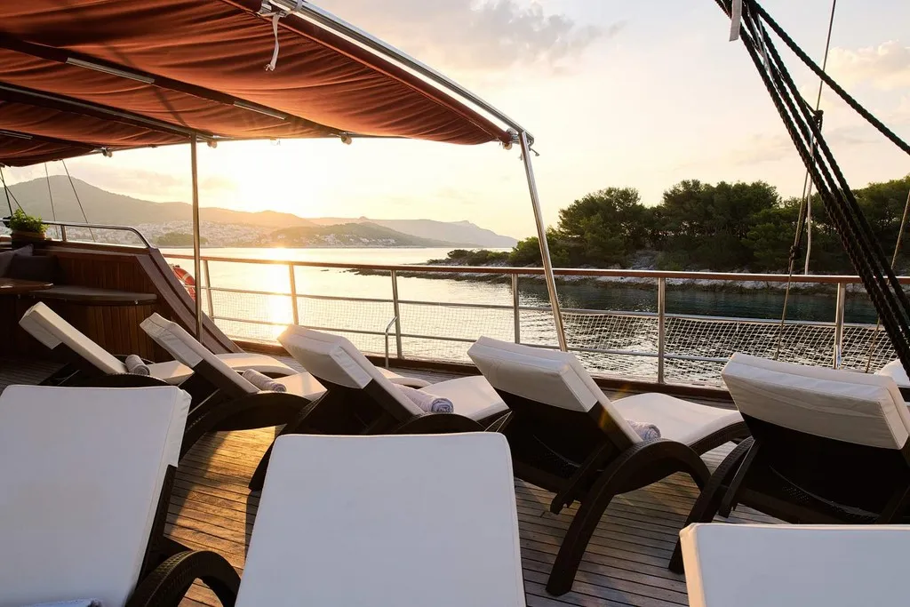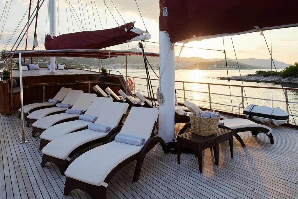 Il veliero Cataleya è uno yacht di 30 metri, disponibile per le crociere private e charter in Croazia. Barca a motore Cataleya appartiene a una famiglia nota per charter servizio molto professionale, arricchendo la vostra crociera di informazioni, consigli e cortesia. Cataleya dispone di 5 cabine doppie, 2 cabine doppie con letti separati e 2 cabine triplici, sistemando confortevolmente fino a 21 persone a bordo. Tutte le cabine hanno climatizzazione e bagni privati, assicurando massima riservatezza e comfort agli ospiti. L’equipaggio a bordo è composto da 5 membri che vengono sistemati in quartieri indipendenti. Tutti i membri dell’equipaggio vengono selezionati con molta cura e sapranno farsi carica di ogni aspetto di vostra crociera così che non mancasse davvero nulla per godervi una vacanza piacevole sull’Adriatico. Gli spazi interiori sono molto accoglienti con il salone interiore dotato di TV al plasma, DVD e mp3 lettore, e l’accesso all’internet. Gli spazi all’aperto sono ideali per trascorrere momenti di svago totale, prendendosi il sole, rilassandosi, mangiando sotto le stelle o semplicemente osservando i paesaggi incredibili della costa adriatica. Si possono organizzare anche altre attività come sci d’acqua, immersione subacquea o windsurfing mentre le gite in gommone sono perfette per esplorare spiagge e baie secluse lungo la costa dalmata. Gli itinerari nautici possono essere personalizzati e adatti a vostre preferenze personali, comprendendo le bellissime isole dalmate di Hvar, Brac o Vis ma anche il sud di Croazia con località immancabili come Dubrovnik, Korcula e Mljet. Il veliero Cataleya è la scelta ideale per accogliere gruppi di amici oppure coppie in cerca di rifugio romantico ma questo bellissimo yacht fornisce ancora un splendido ambiente per i vostri viaggi aziendali e incentivi. Gli ospiti che preferiscono semplicità, comfort e sapori autentici del Mediterraneo, troveranno a bordo veliero Cataleya tutto necessario per una vacanza rilassante in Croazia.