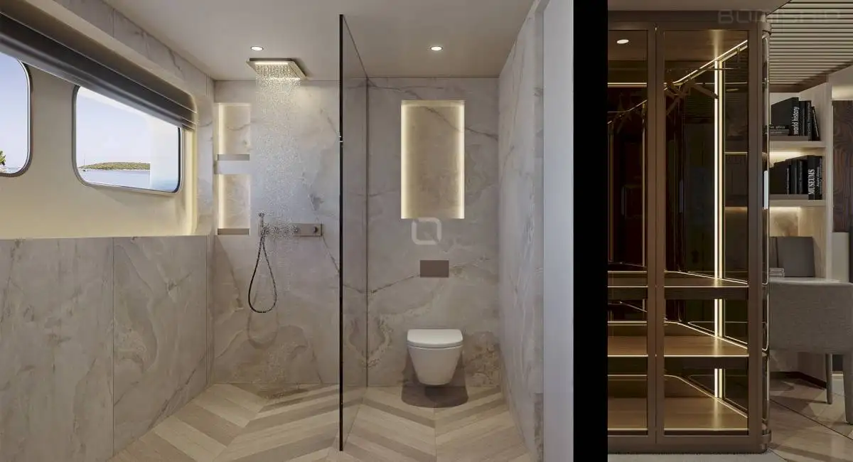 Cabina VIP full beam con letto matrimoniale / 27 m² / dimensioni letto 200 x 200, con cabina armadio walk-in