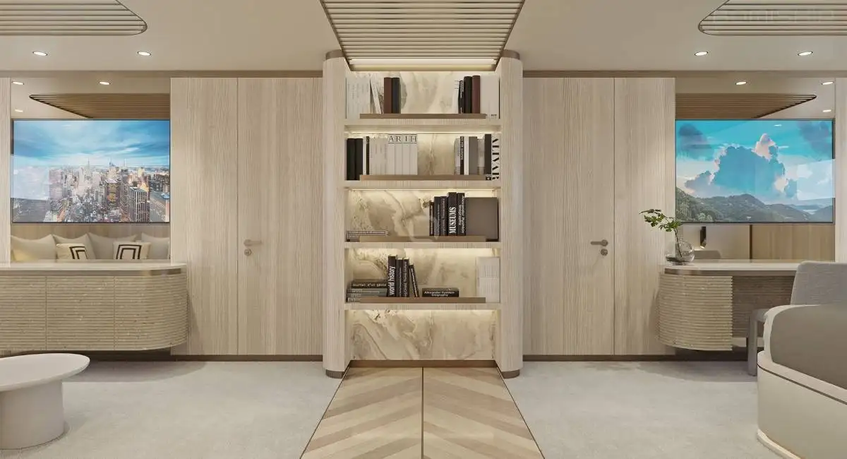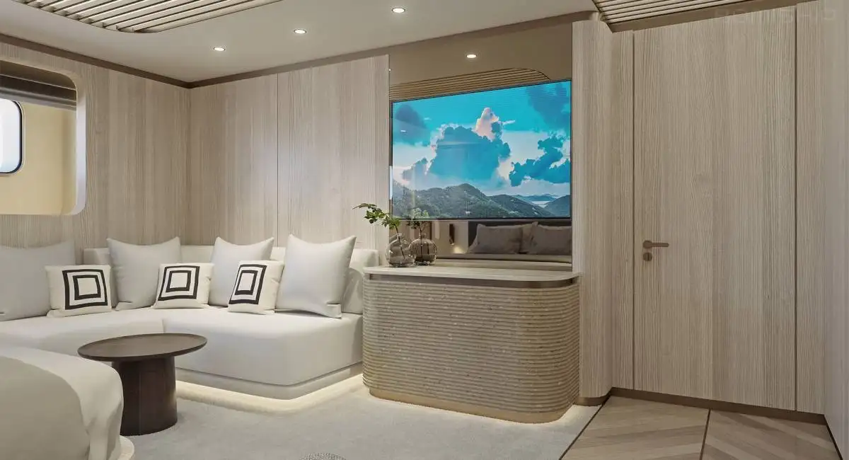 Smart TV satellitare/connessione USB per contenuti multimediali nel salone; Smart TV satellitari in tutte le cabine; Internet 5G Starlink; PlayStation 5; proiettore a scomparsa per serate cinema sotto le stelle; attrezzatura da palestra: corsa su tapis roulant personale, recliner personale; 2 x manubri in uretano (6 kg, 8 kg e 12 kg), 2 x kettlebell da 6 kg e 12 kg, palla wellness. Tappetini per Pilates, corde per saltare x 4, sauna finlandese, lettino da massaggio