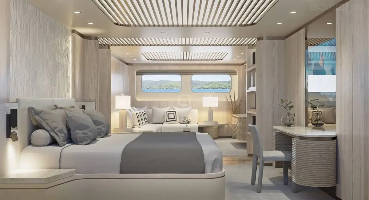 Cabina Master full beam con letto matrimoniale / 46 m² / dimensioni letto 200 x 200, con cabina armadio walk-in