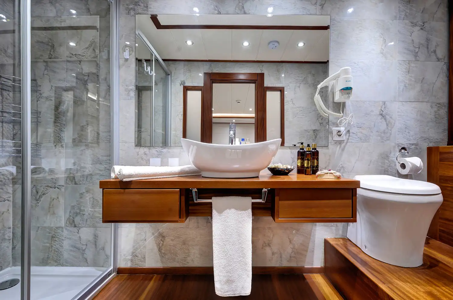 • Ogni cabina dispone di bagno privato con doccia