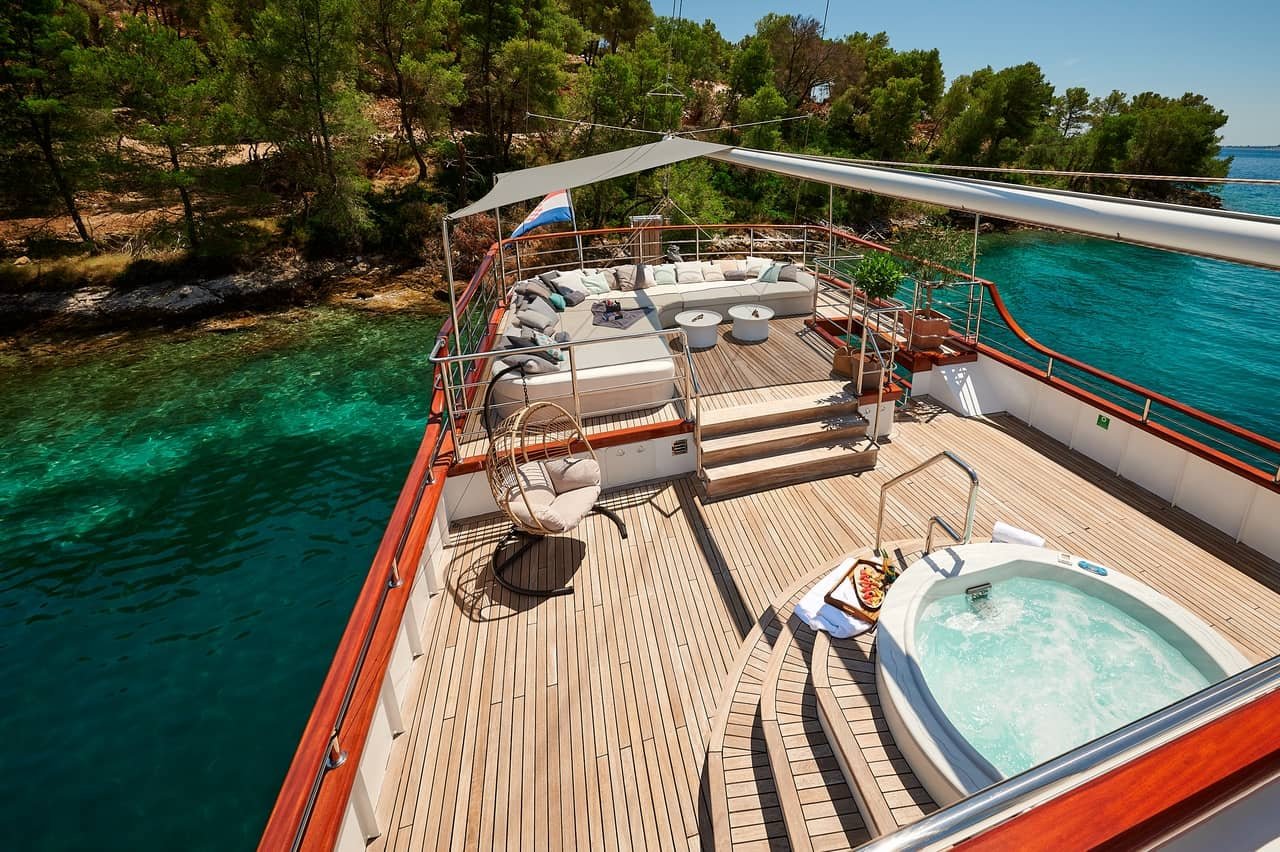 Il lussuoso yacht Corsario, lungo 48 metri, offre splendide vacanze in crociera lungo le coste mozzafiato della Croazia, confermandosi anche in un’altra stagione di navigazione come una destinazione “must” per la vela. Questo elegante superyacht dispone di 6 cabine di lusso con bagno privato en-suite per un massimo di 12 ospiti. Una cabina armatoriale, una cabina VIP, due cabine matrimoniali e due cabine con letti gemelli sono tutte dotate di TV a schermo piatto, cassetta di sicurezza, Wi-Fi, impianto audio surround, interfono, aria condizionata e servizio in cabina opzionale.