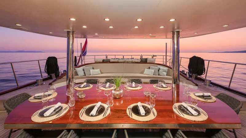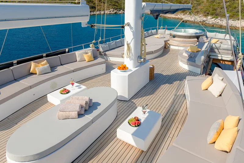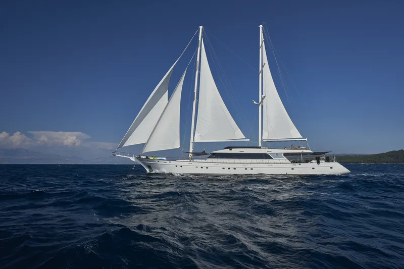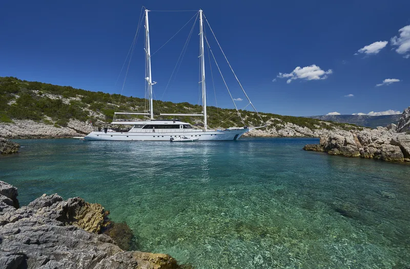 Lungo 49 metri, lo yacht a vela di lusso Gita può ospitare fino a 12 ospiti in 2 cabine armatoriali e 4 cabine matrimoniali. Tutte le cabine dello yacht dispongono di letti king size e sono arredate con un’eleganza e uno stile sobri. Il salone principale offre una deliziosa zona pranzo con bar e un’area lounge ed è dotato di tutte le consuete comodità di uno yacht di lusso.