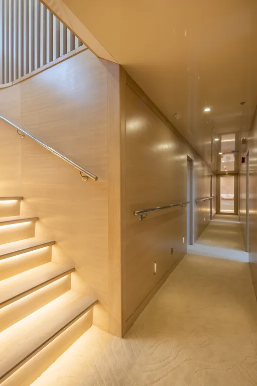 Le 2 cabine armatoriali, 2 cabine matrimoniali e 2 cabine triple dello yacht possono ospitare comodamente fino a 12 ospiti a bordo. Arredate splendidamente, tutte le cabine dispongono di aria condizionata, Wi-Fi, cassetta di sicurezza, interfono, TV, bagno privato en-suite in marmo e servizio in cabina. Il resto degli interni comprende un salone principale arredato con gusto, con una splendida zona pranzo e un bar, oltre a un’area lounge con TV, lettore DVD, docking station per iPad/iPod/mobile e Wi-Fi.