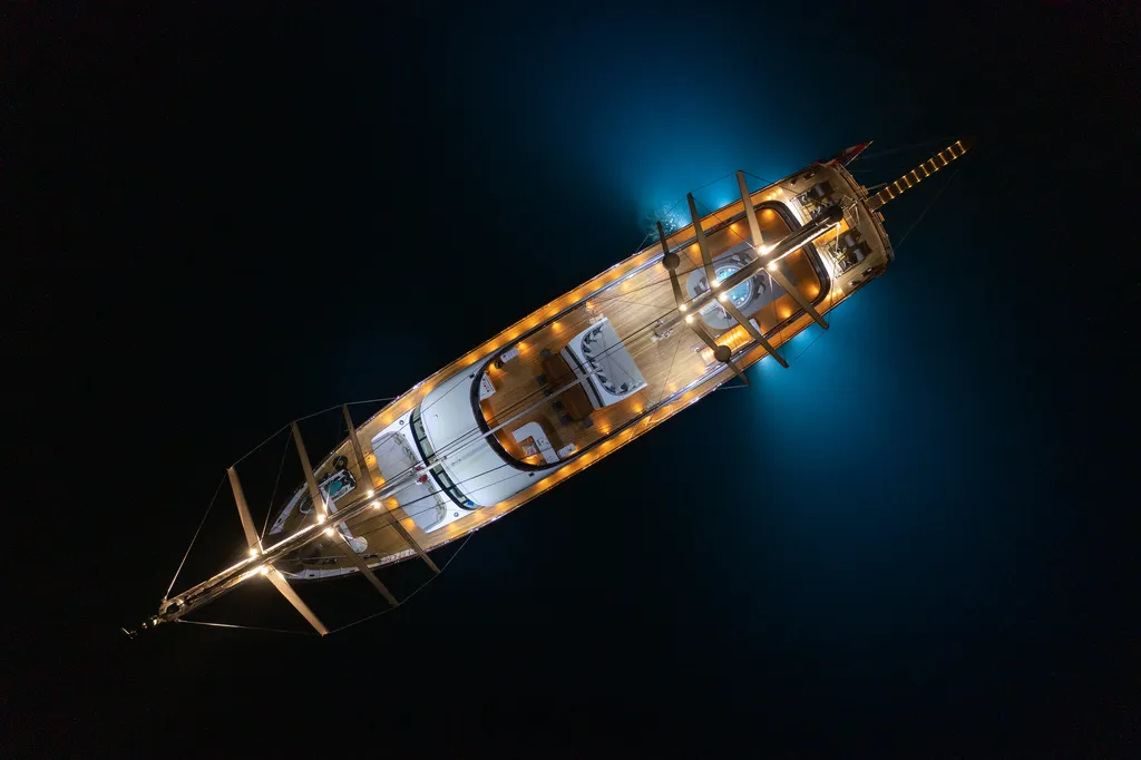 All’esterno vi attendono due ponti e molto spazio per trovare il luogo perfetto per le attività che preferite in vacanza: dal gustare il primo caffè del mattino all’assaporare la deliziosa cucina mediterranea a cena. Sul ponte di poppa troverete una zona pranzo all’aperto ombreggiata per 12 persone, mentre il ponte prendisole offre numerosi comodi materassini e divani e, naturalmente, una jacuzzi con bolle. La piattaforma bagno, invece, è il luogo ideale per le attività di sport acquatici durante il giorno, mentre al tramonto diventa un romantico angolo per una cena per 2 sotto le stelle.
