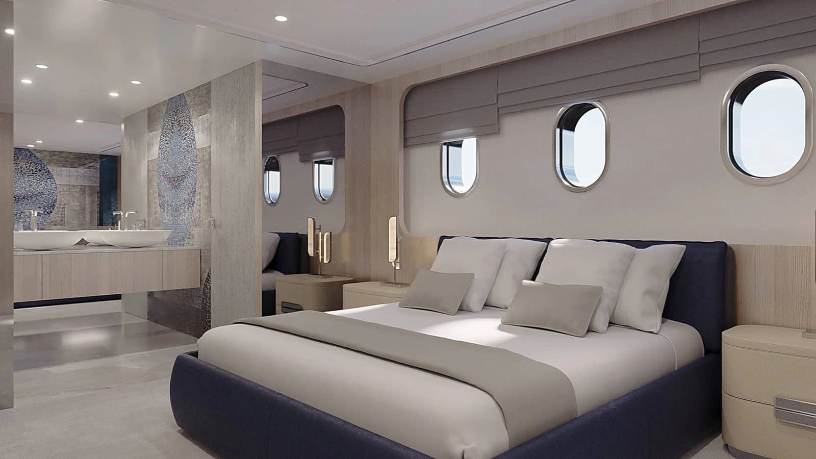 • Lussuosa Master Suite – Situata sul ponte principale, master suite vanta un ingresso privato, una vista panoramica mozzafiato e un’atmosfera esclusiva, perfetta per il relax e la tranquillità assoluta.