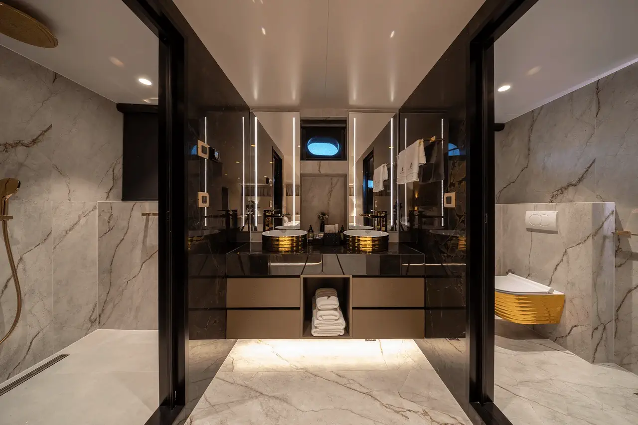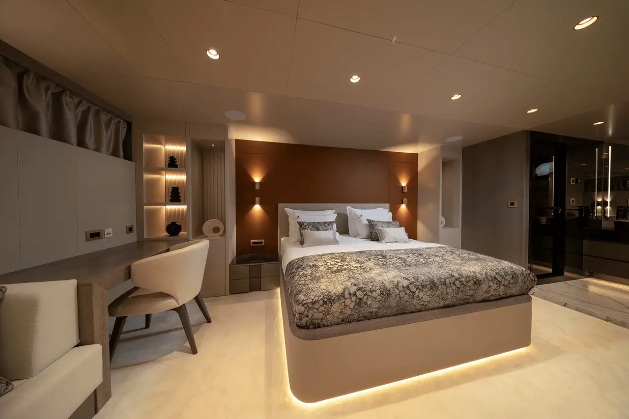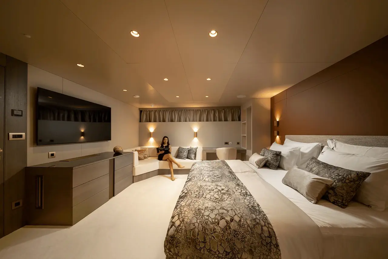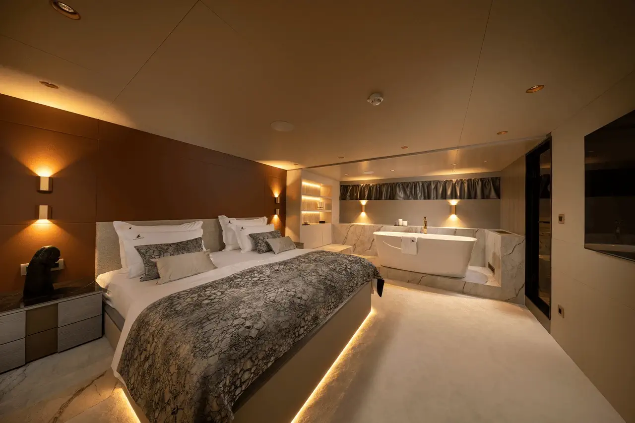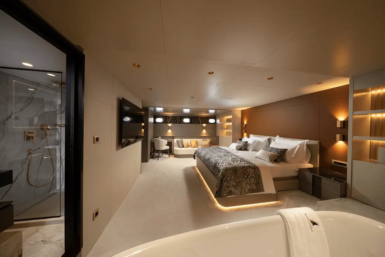 Alloggi notturni straordinari e confortevoli, un servizio charter eccellente, ampie aree esterne e dotazioni di alto livello sono solo alcune delle caratteristiche principali che rendono Nocturno uno yacht ideale per charter privati e vacanze in crociera di lusso in Croazia. Gli ospiti hanno a disposizione 6 cabine: 1 cabina VIP, 1 suite armatoriale con vasca idromassaggio, 2 cabine matrimoniali e 2 cabine con letti gemelli. Tutte dispongono di bagno privato en-suite con tutti i necessari set di cortesia, TV, cassetta di sicurezza, impianto surround con controlli separati e, naturalmente, Wi-Fi. Quest’ultimo è disponibile in tutte le aree ospiti e dell’equipaggio dello yacht, insieme all’aria condizionata. Naturalmente, gli alloggi dell’equipaggio sono separati dalle cabine ospiti per garantire la massima privacy durante la navigazione nelle scintillanti acque dell’Adriatico.