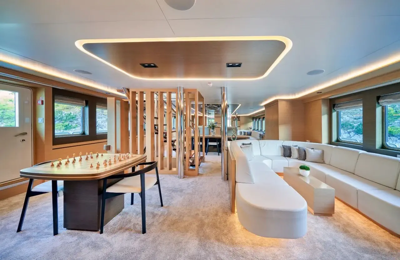 • Area lounge con TV OLED, DVD, CD e radio, sistema audio surround SONOS con controlli separati nel salone principale e nelle cabine