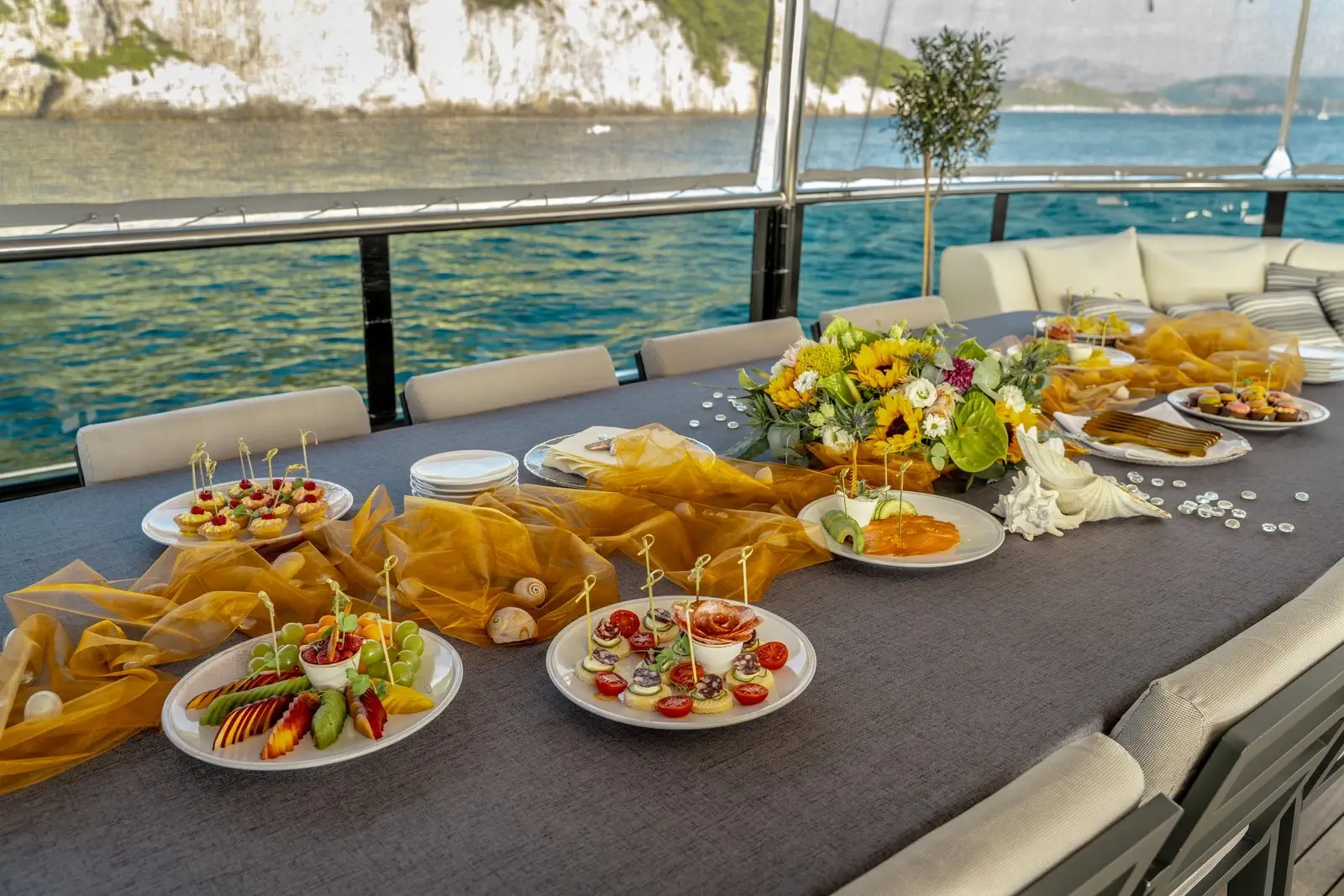 Le crociere a bordo di Freedom sono dedicate al piacere della buona tavola, così potrete gustare cibo straordinariamente delizioso preparato dallo chef e dal sous chef dello yacht. L’attenzione è rivolta soprattutto a frutti di mare e prodotti locali biologici, ma il menu può essere personalizzato e adattato a ogni tipo di preferenza alimentare, come senza glutine e vegetariano. Per quanto riguarda i ponti esterni, il sundeck è l’area che attira maggiormente l’attenzione.