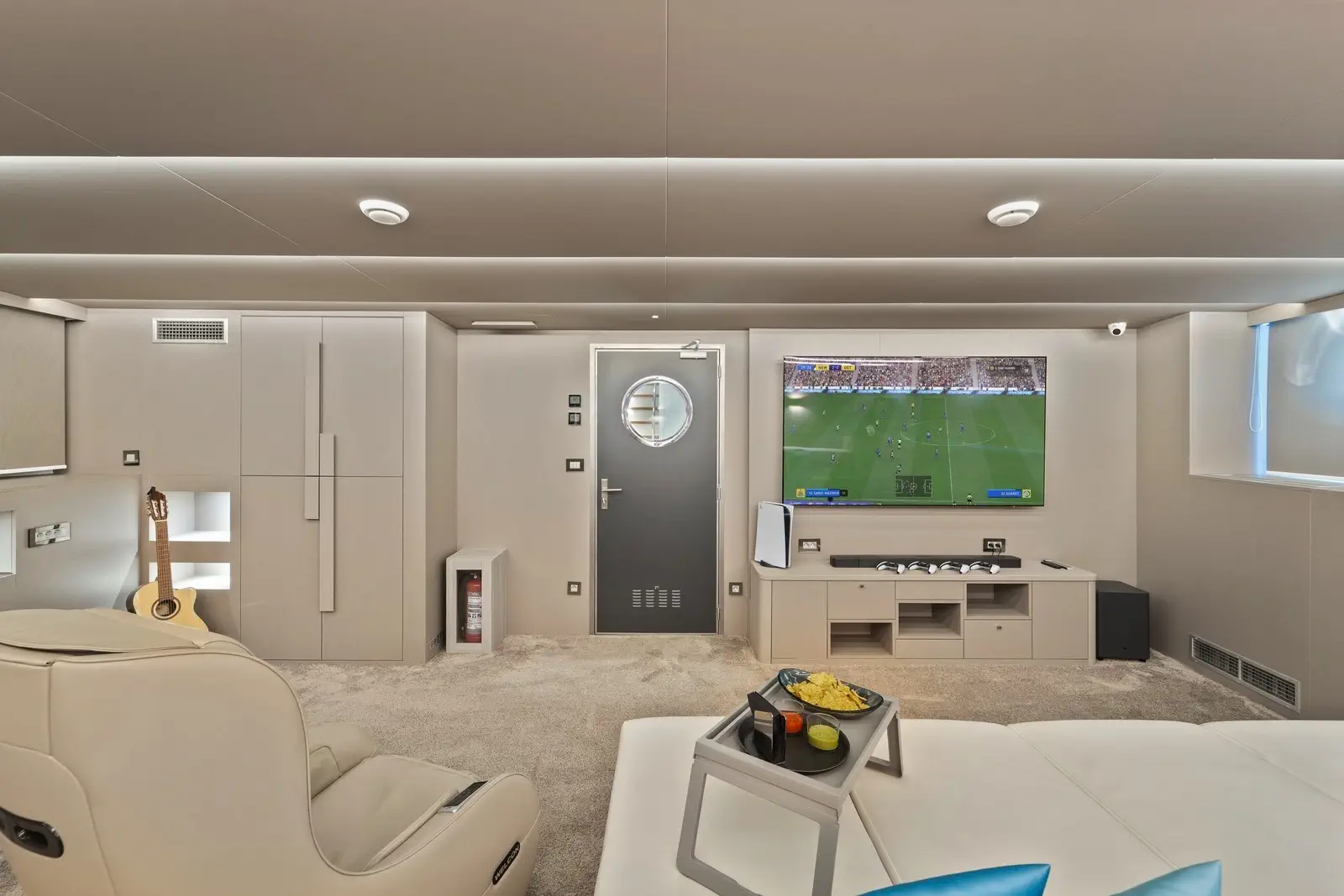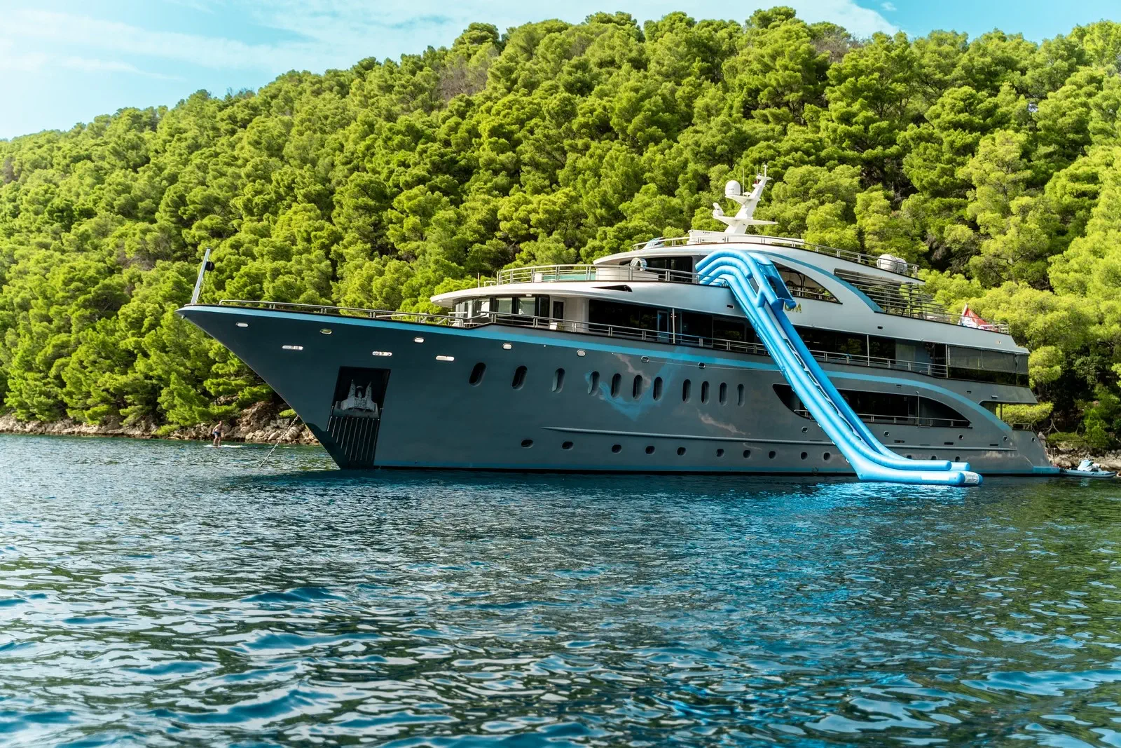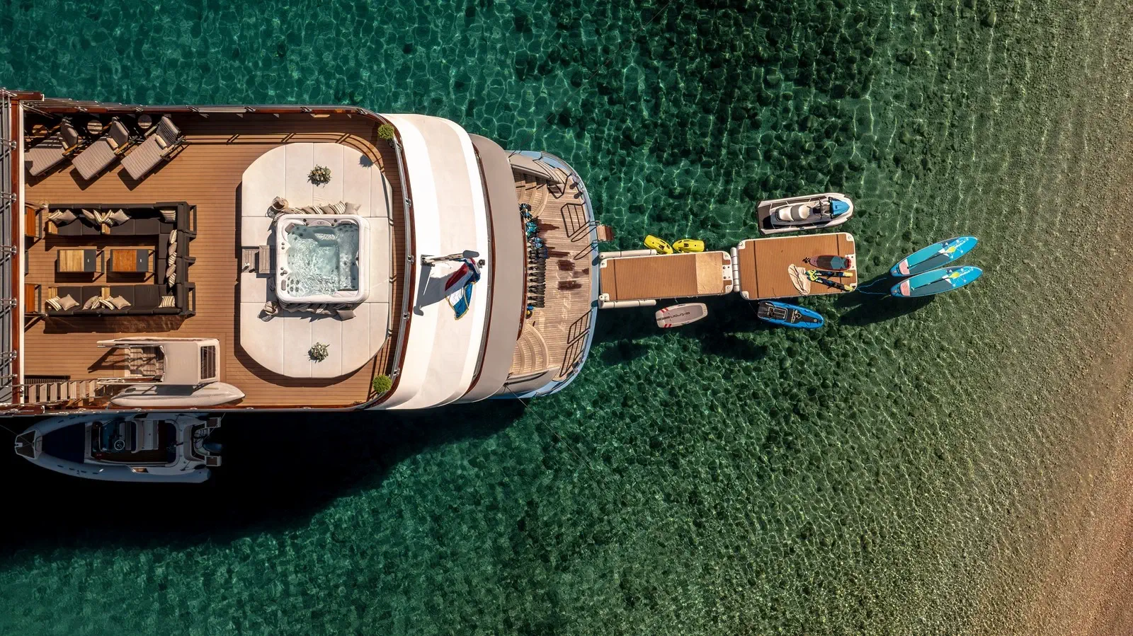 Questo splendido superyacht dispone inoltre del cosiddetto quinto livello, ovvero un ampio roof deck accessibile tramite una scala a pioli. Se amate gli sport acquatici, sarete entusiasti dell’impressionante gamma di giochi d’acqua di Freedom: dagli sci nautici e wakeboard fino ai paddle board e jet ski.