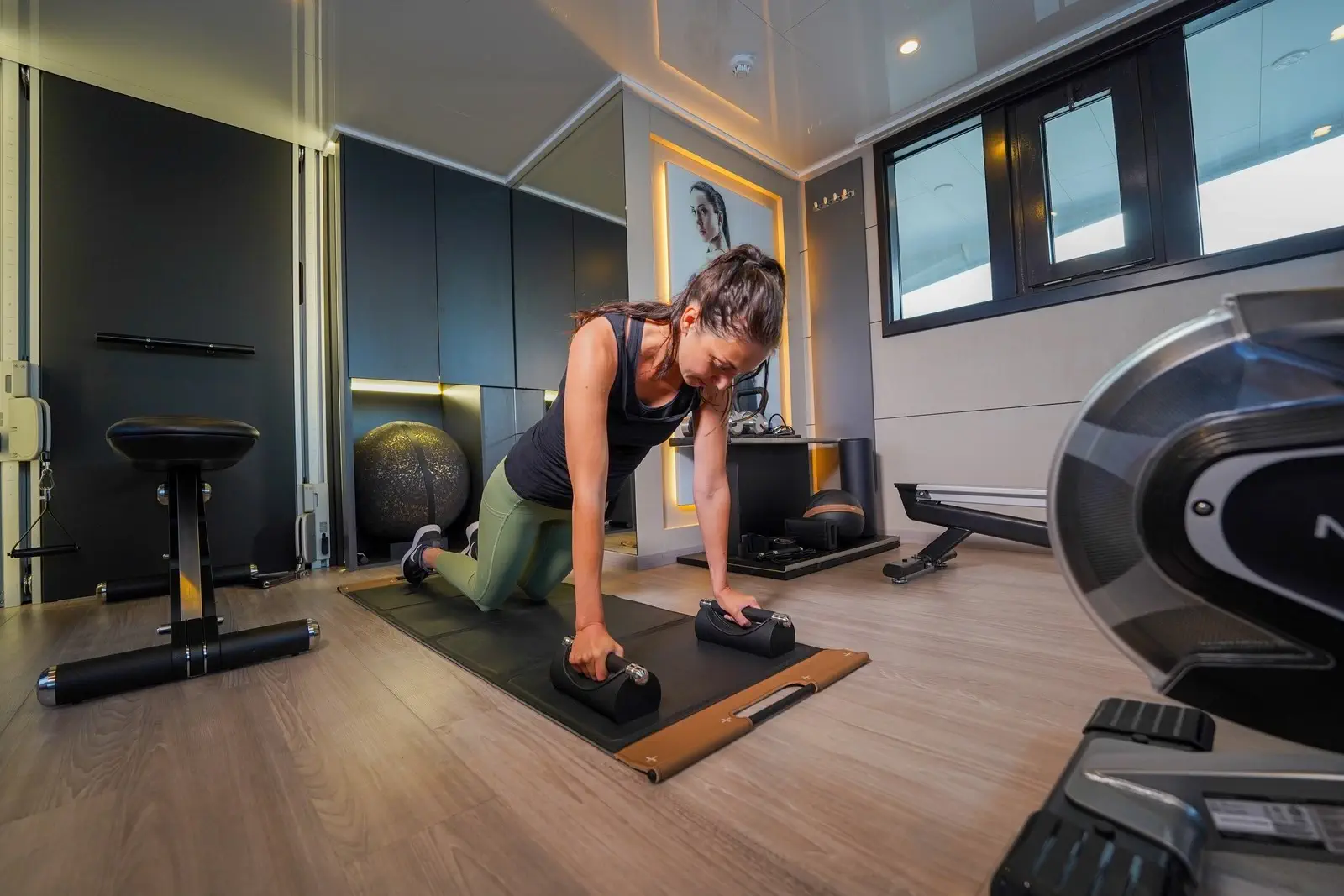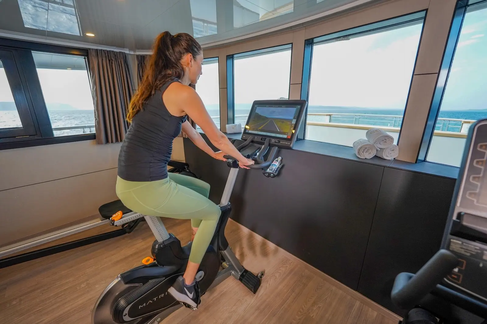 Con comodi divani a U, una jacuzzi circondata da cuscini prendisole, lettini, e tavolini, il sundeck è il luogo ideale per abbronzarsi, rilassarsi e trascorrere momenti di tranquillità con famiglia e amici. Sono presenti anche un bar ben fornito, una palestra climatizzata e una piscina di fronte alla palestra.