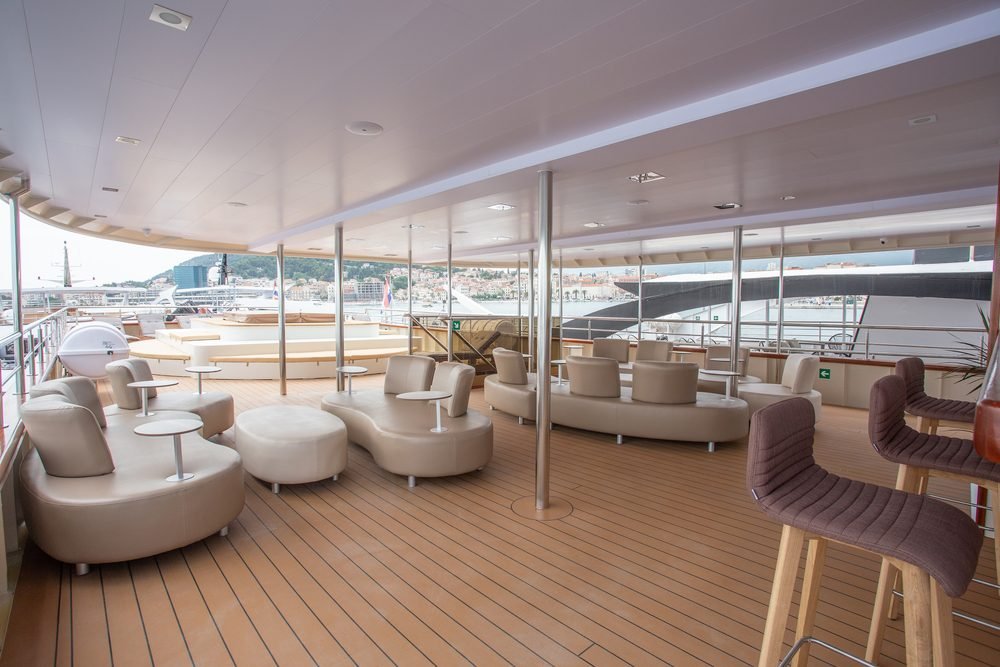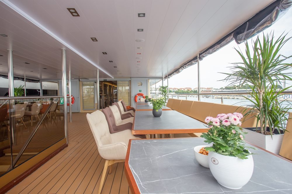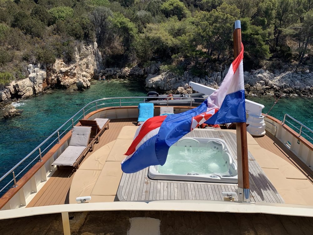 Le aree esterne della nave sono il luogo migliore per rilassarsi e godersi la vostra vacanza in navigazione ammirando la bellezza naturale delle isole dalmate. C’è un ampio sundeck per prendere il sole, una Jacuzzi e la piattaforma bagno della nave con gradini integrati, per nuotare nel meraviglioso Mare Adriatico durante le soste bagno in crociera.
