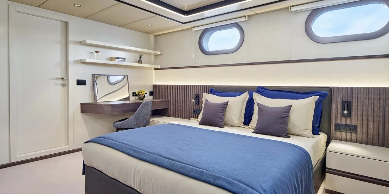 • 1 x STERN MASTER CABIN – Cabin 38 m2, with double bed. Private bathroom with shower and toilet
