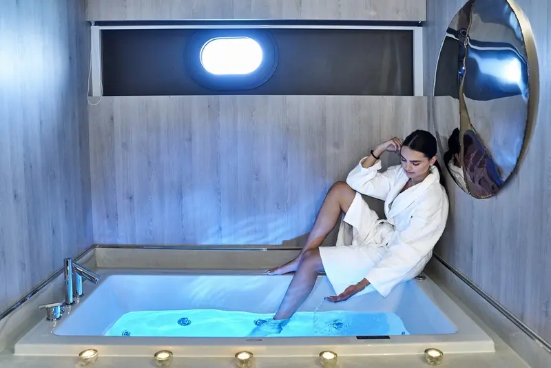 • 1 x VIP CABIN – 35 m2, double bed (200*200 cm). Private bathroom with shower box and home toilet.