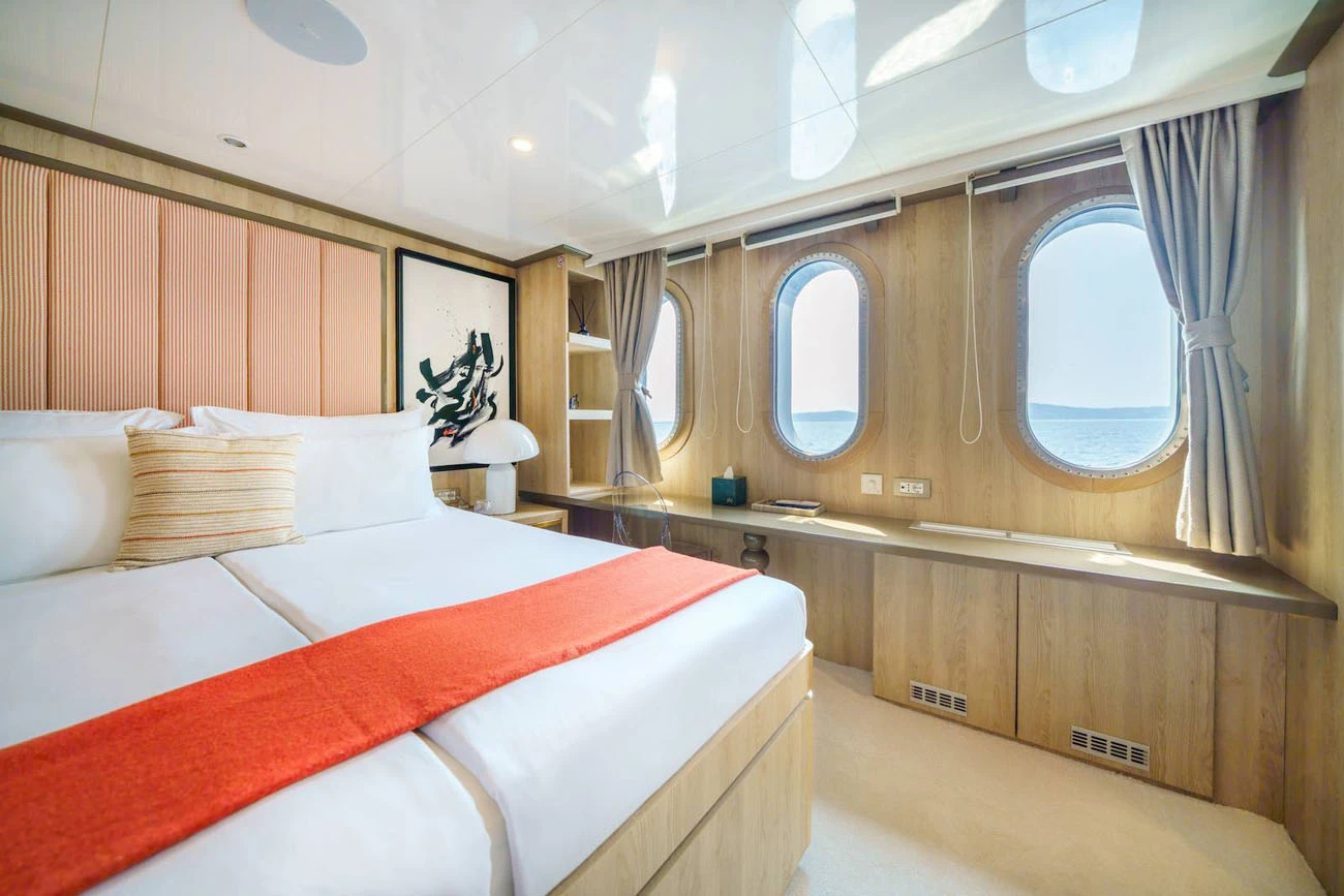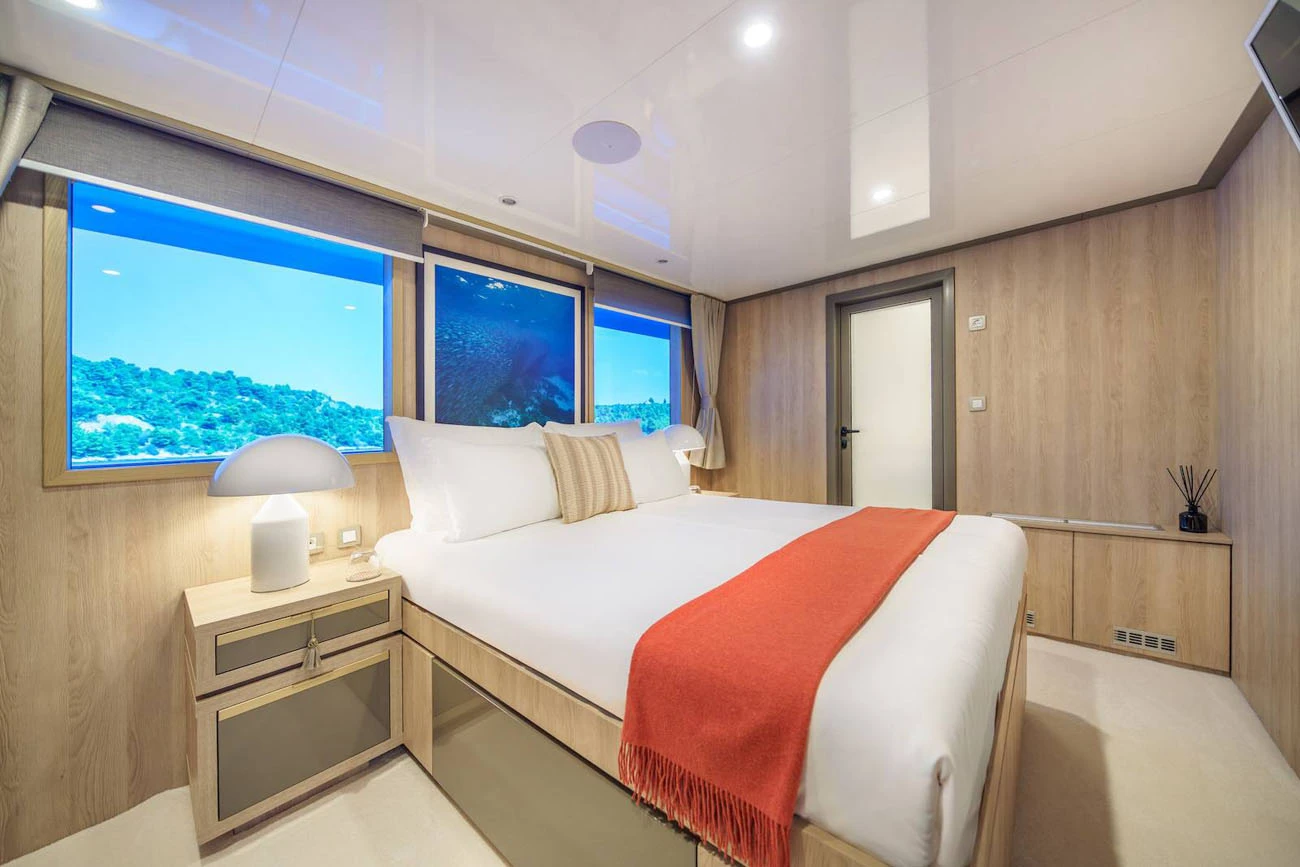 Agape Rose accommodates up to 22 guests in 11 spacious staterooms, offering a flexible accommodation layout well suited to private yacht charters of this size. 7 cabins feature convertible layouts, allowing the sleeping configuration to be adjusted to suit couples, friends, or family groups. This flexibility ensures optimal comfort and privacy for each charter, positioning Agape Rose as an excellent option for high-capacity private cruising in Croatia without compromising the intimate feel of a luxury yacht.