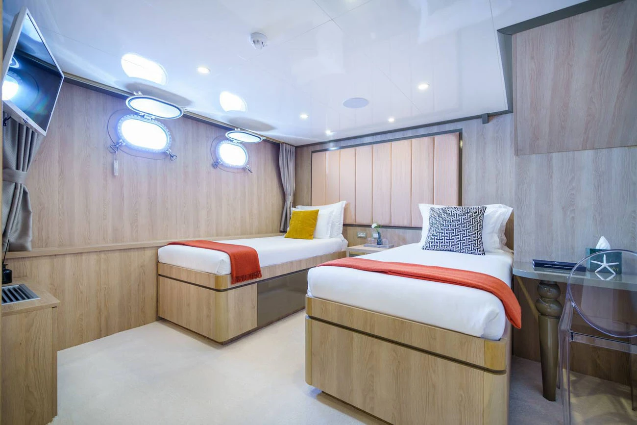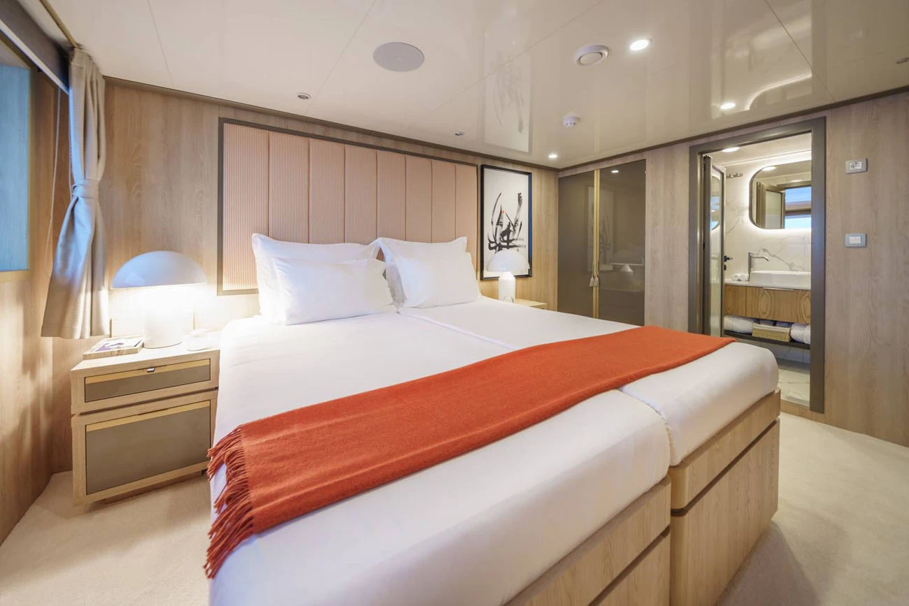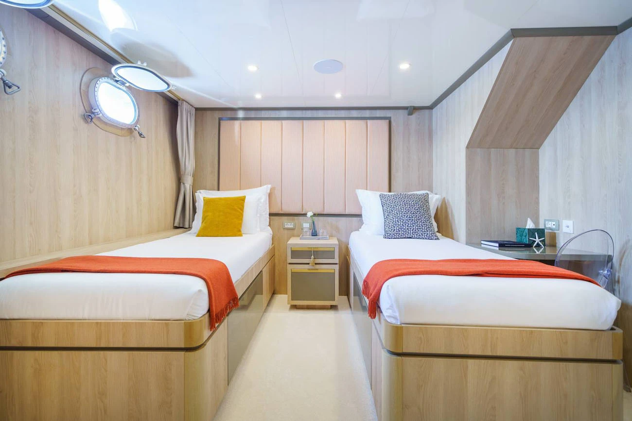 Yacht accommodation for up to 22 guests sleeping in 11 cabins