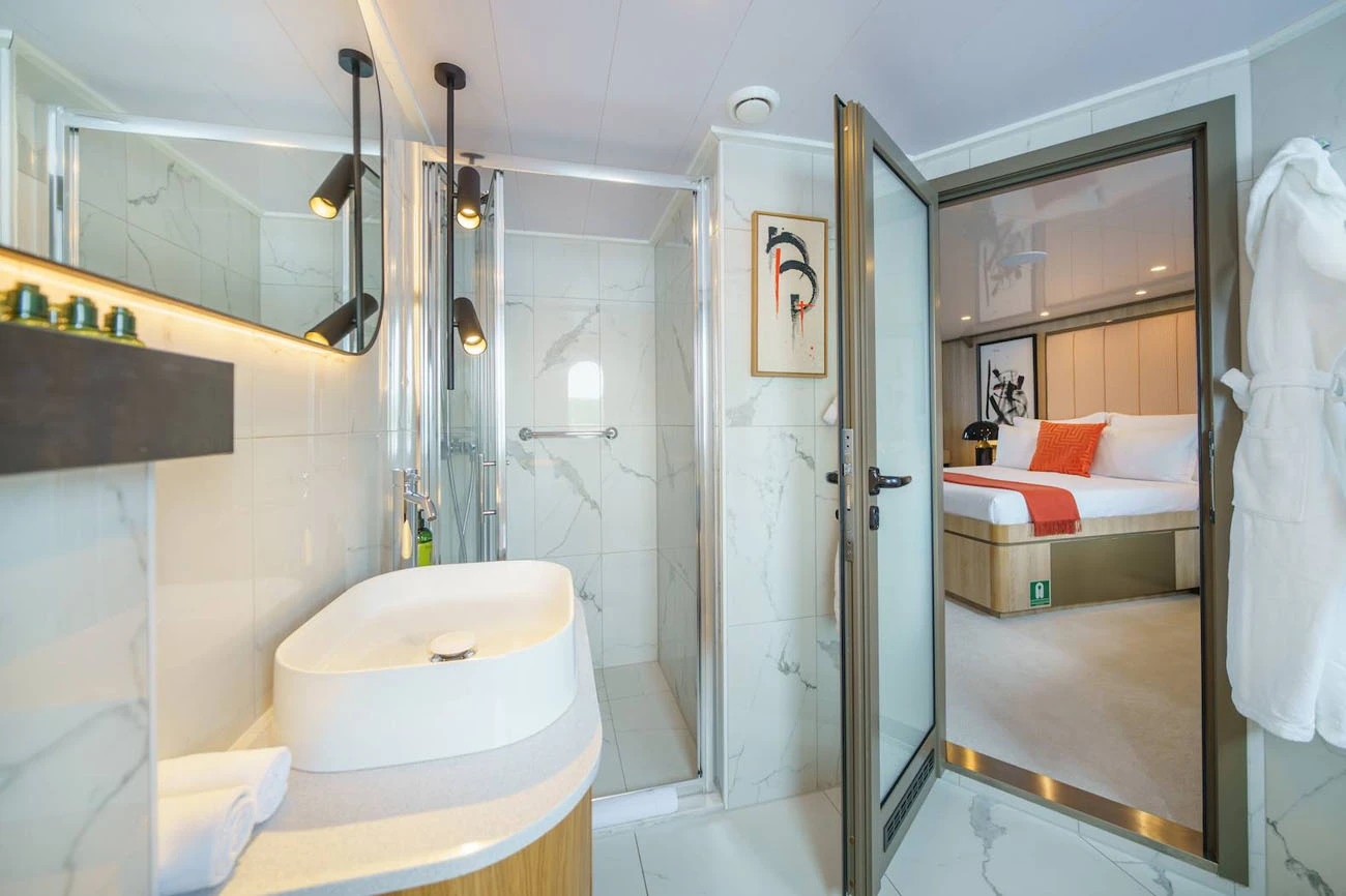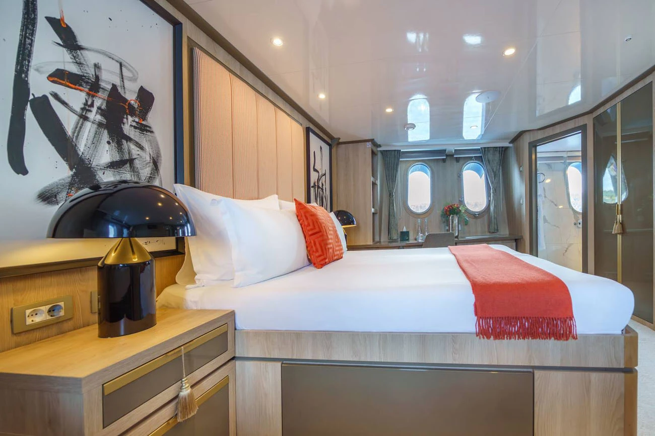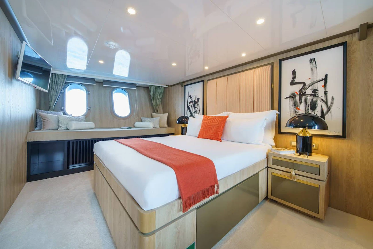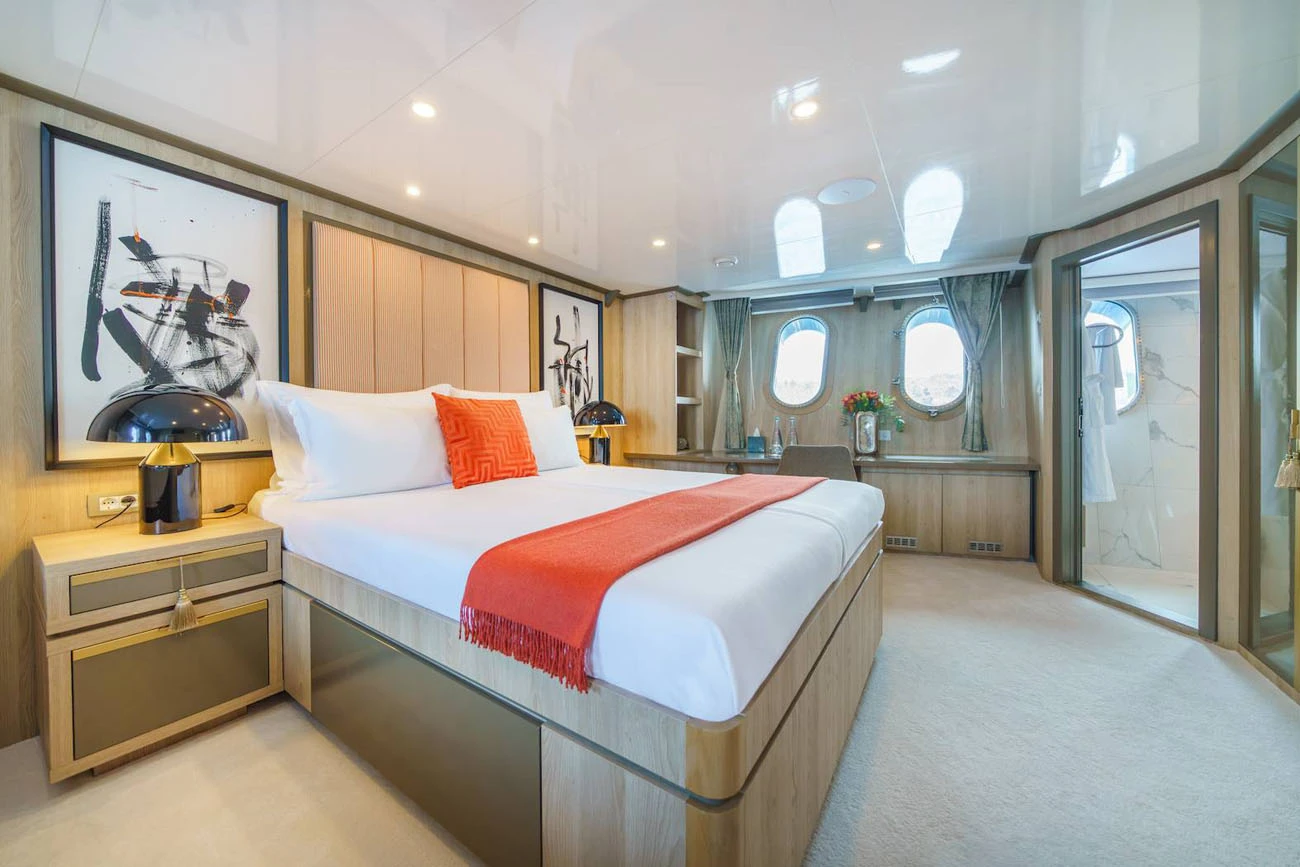 Yacht accommodation for up to 22 guests sleeping in 11 cabins