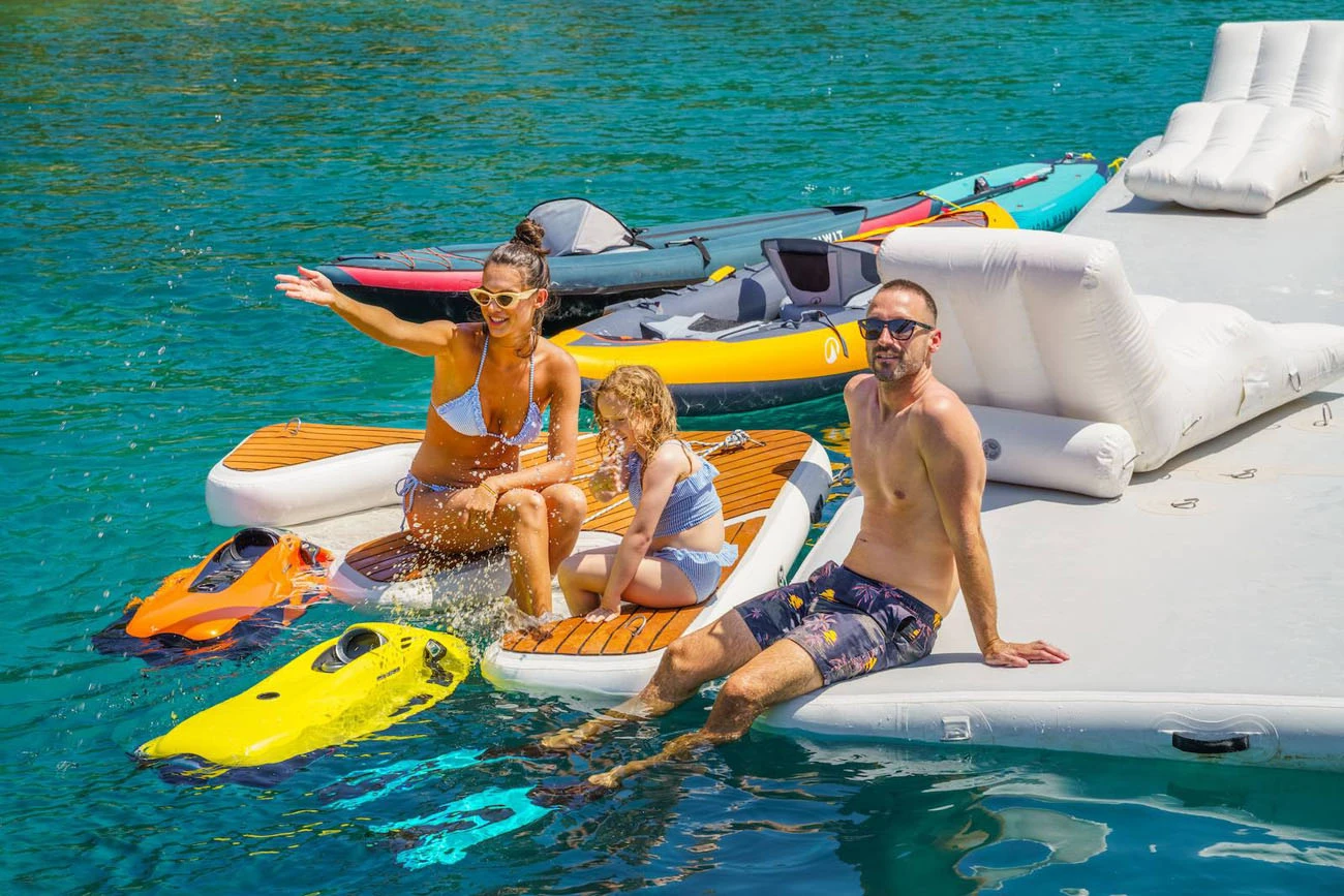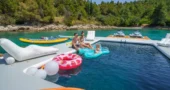 • Inflatable swim platform with netted pool