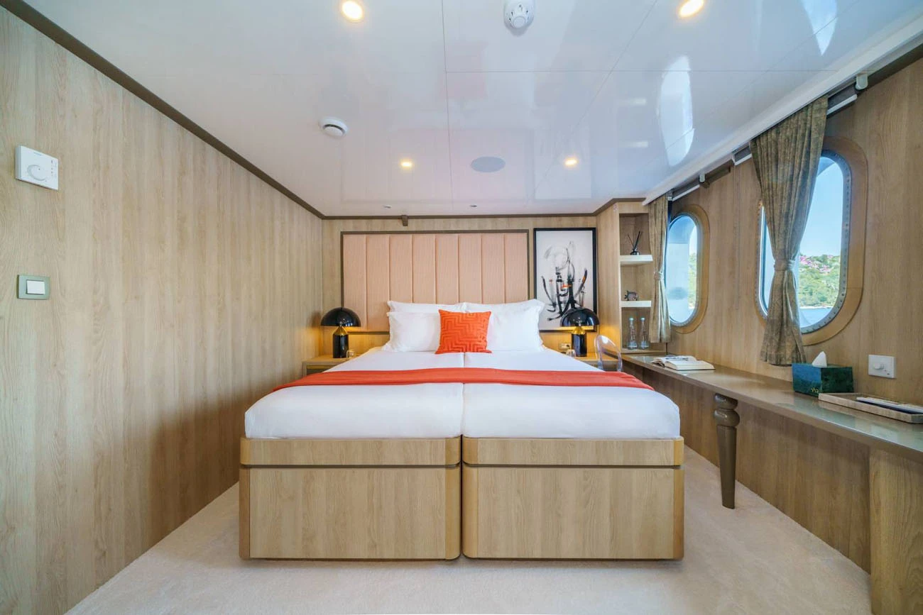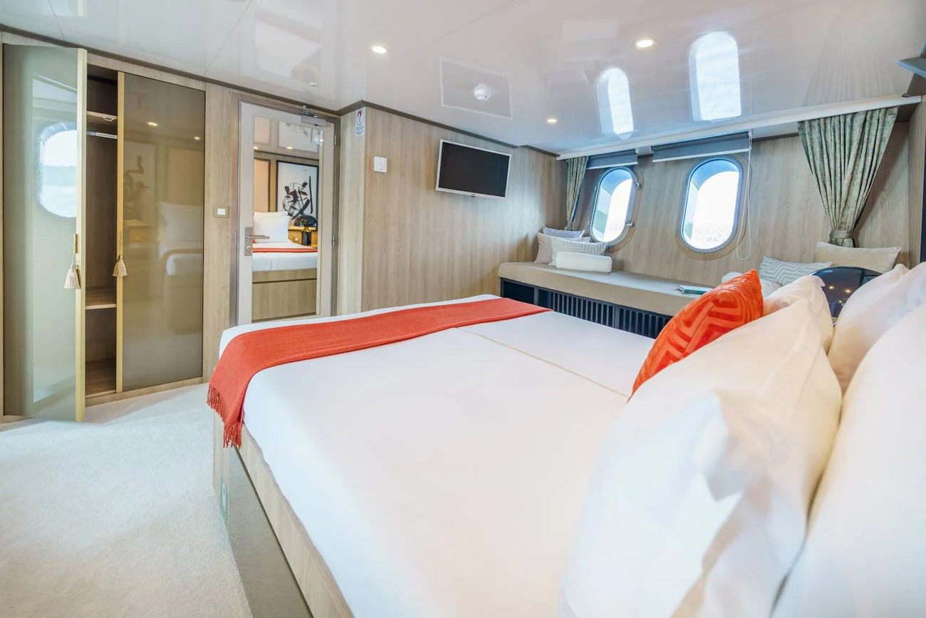 Main deck: 1 x Master Cabin, 2 x Double Cabins, 5 x Convertible Cabins