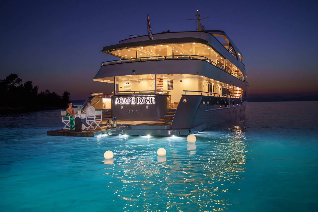 Agape Rose is a luxury mini cruiser available for private charter in Croatia, designed for guests seeking generous space, refined comfort, and a high level of onboard privacy. Accommodating up to 22 guests, the yacht offers an exceptional balance between the volume of a small cruise vessel and the exclusivity of a private superyacht.