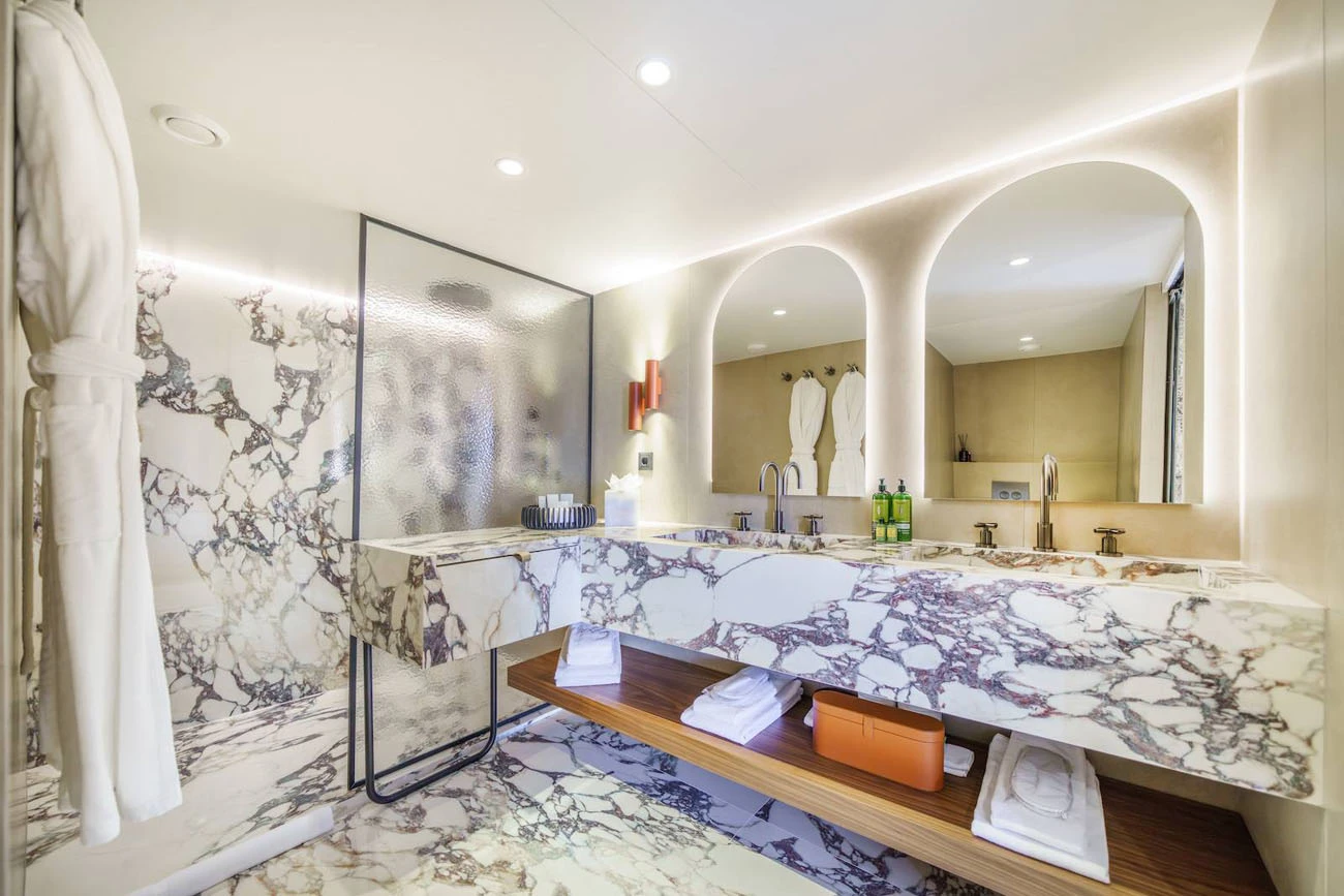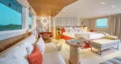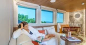 Wellness plays a central role in the onboard experience. The yacht’s interior spaces are designed to support longer stays at sea while maintaining a refined, five-star lifestyle.
