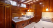 Andi Star offers 4 double bed cabins with an additional single bed and one master suite cabin, all equipped with air conditioning, private en suite bathrooms and paneling in mahogany, with the capacity of accommodating 10 - 12 charter guests.