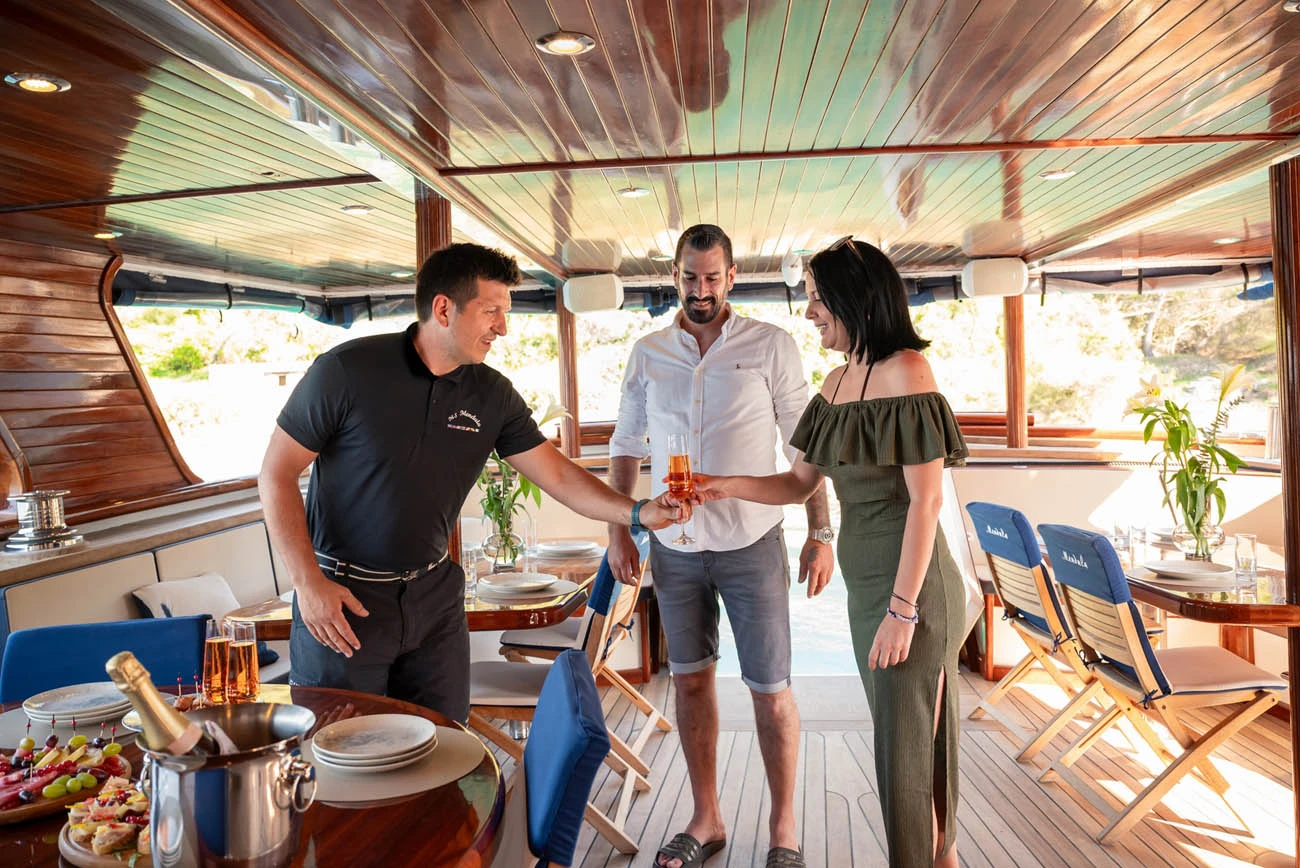 Available for private charters from mid-July until the end of August, mini cruiser Mendula allows plenty of privacy to all its guests. Cruising itineraries seamlessly blend the charms of Central Dalmatia with the picturesque south and north of Croatia, where you can enjoy the incredible natural diversity of the Elafiti Islands, Mljet, Dubrovnik, the Kornati Islands, and other top sailing destinations in Croatia.
