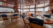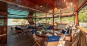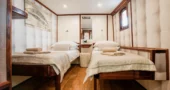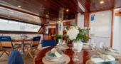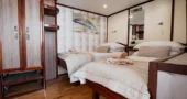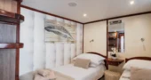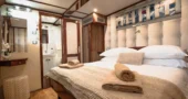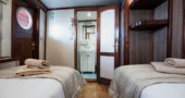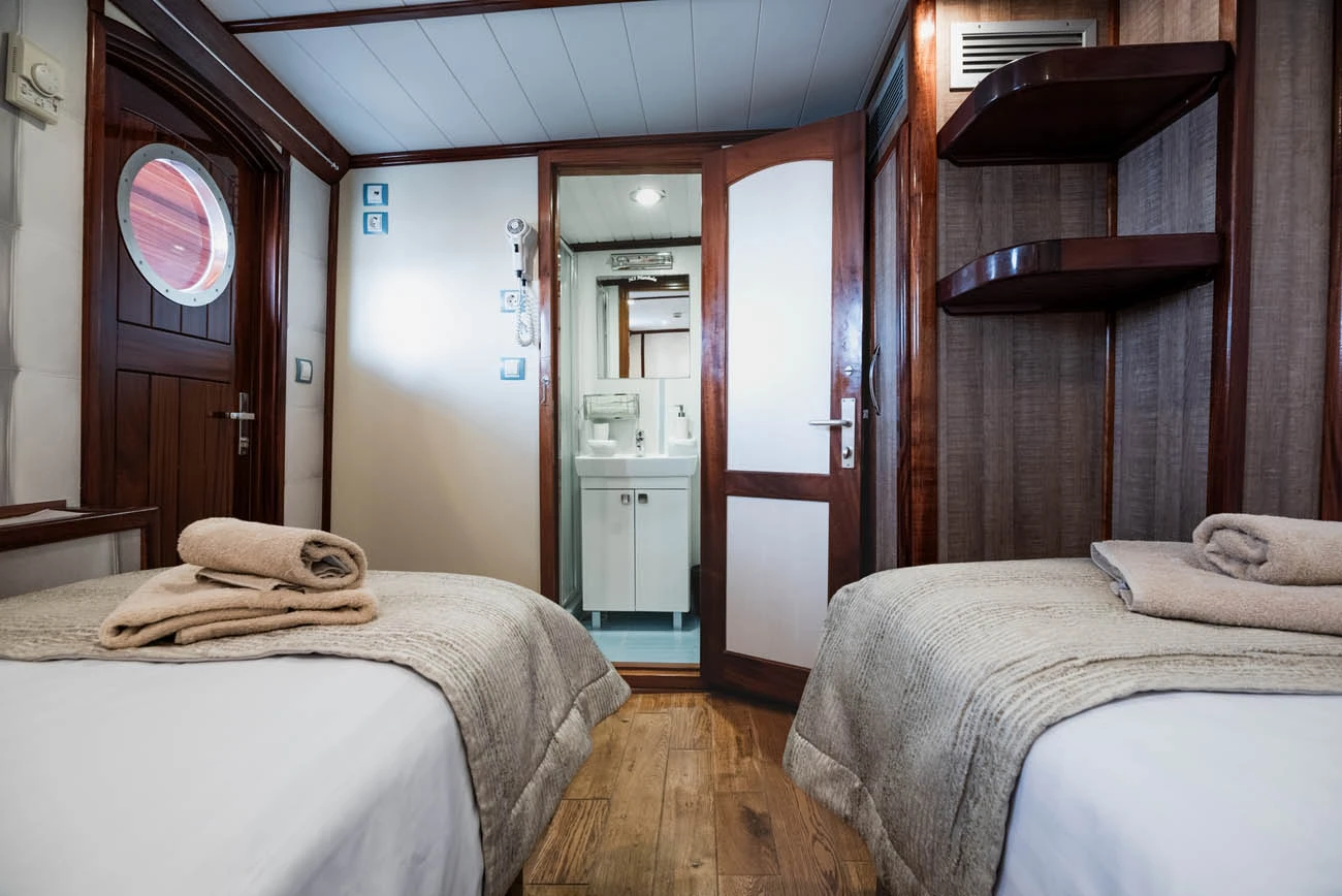 Cabins are located on the lower deck and main deck. Each cabin has a private bathroom and air conditioning, offering truly comfortable accommodation to its guests.