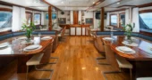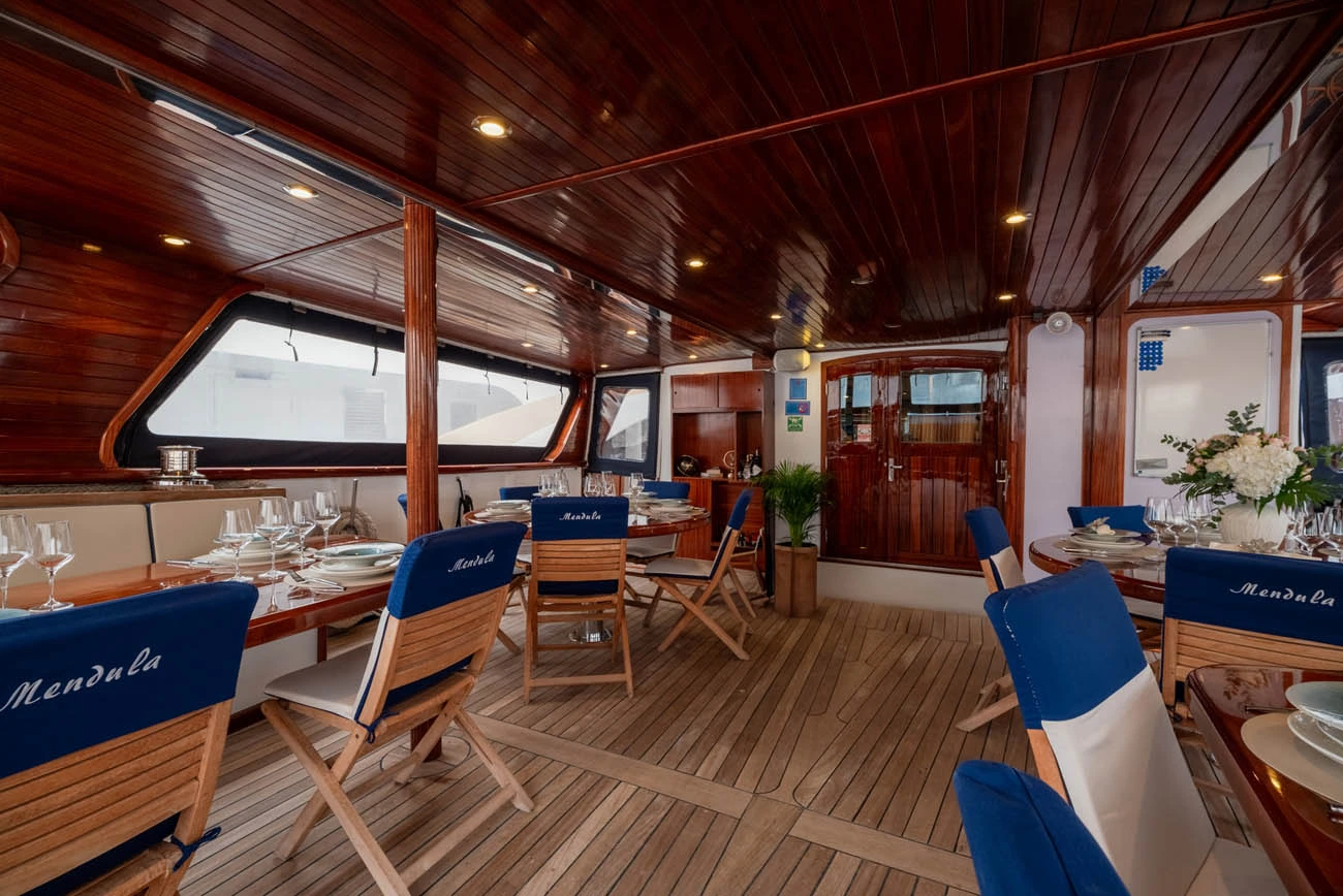 Suitable for both corporate cruises and family holidays, motor sailer Mendula boasts 13 spacious cabins for up to 26 guests.
