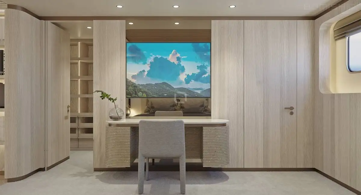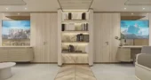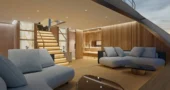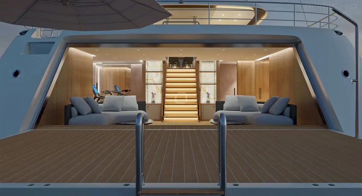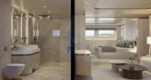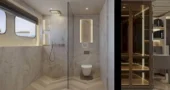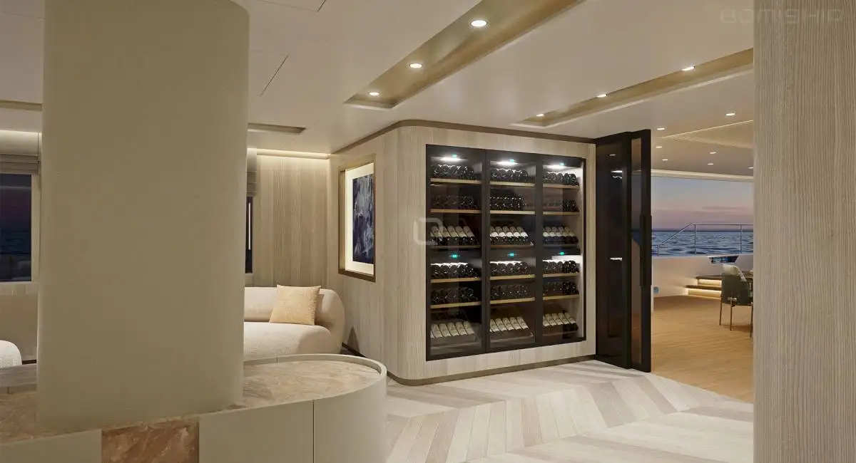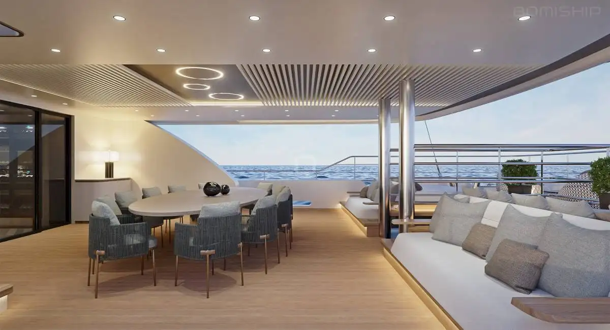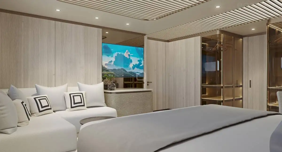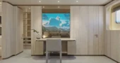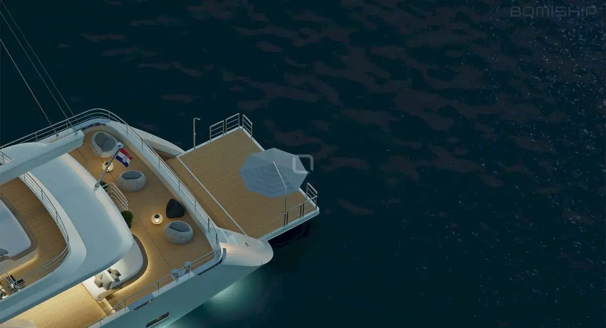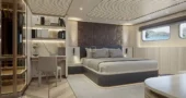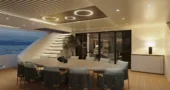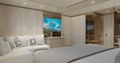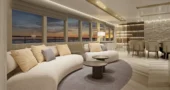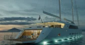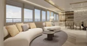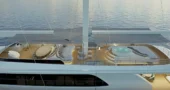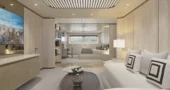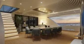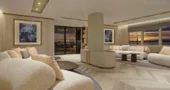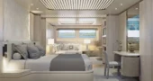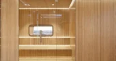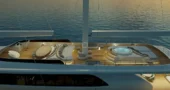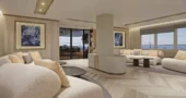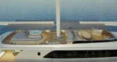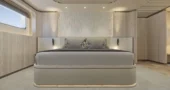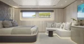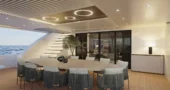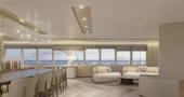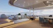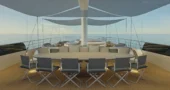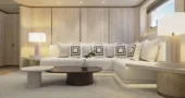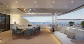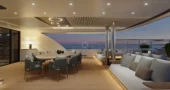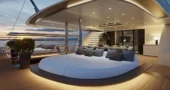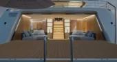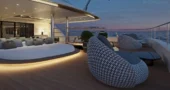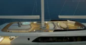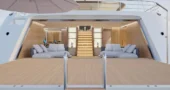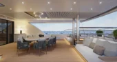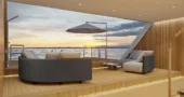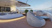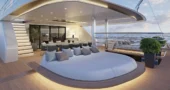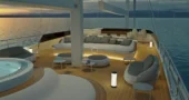 Beach club with Finnish sauna, gym, large bathing platform 20 sqm, teak decks, Kohler generators 2 x 85 kW and Kohler generator 1 x 50 kW, Aircondition, Watermaker Duplex 2 x 300L/h, Sun awnings on all decks, a large sunbathing platform with shower 20sqm, Jacuzzi for six pax, Icemakers x3, Wine coolers in saloon.r Wet bars, Ambient lights, Underwater lights, Outdoor projector for movie night under the stars, sun lounge areas.