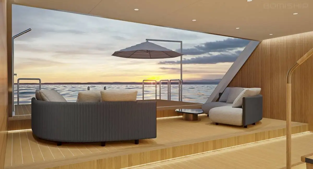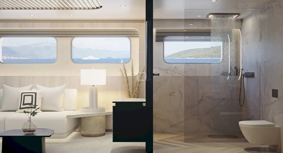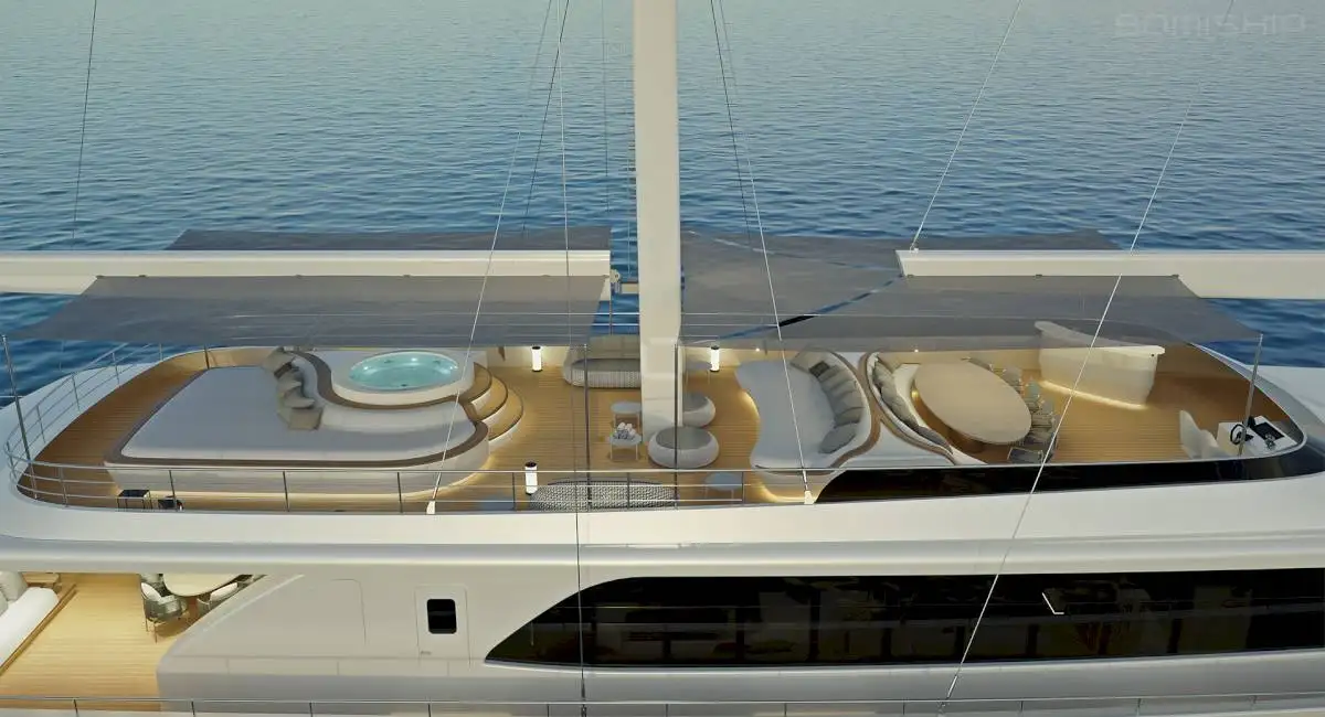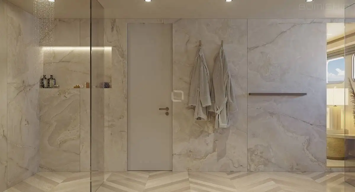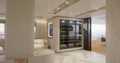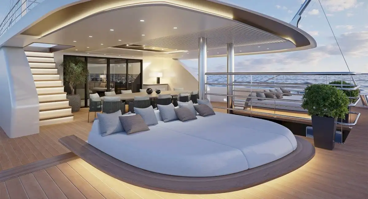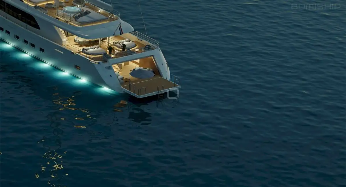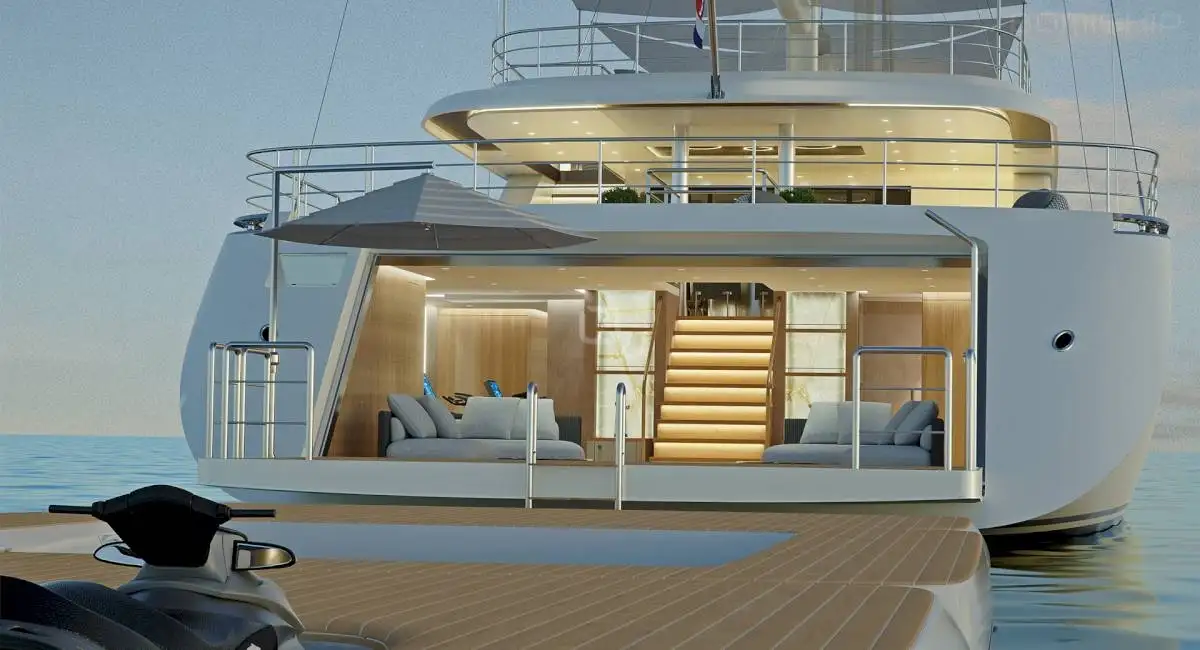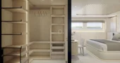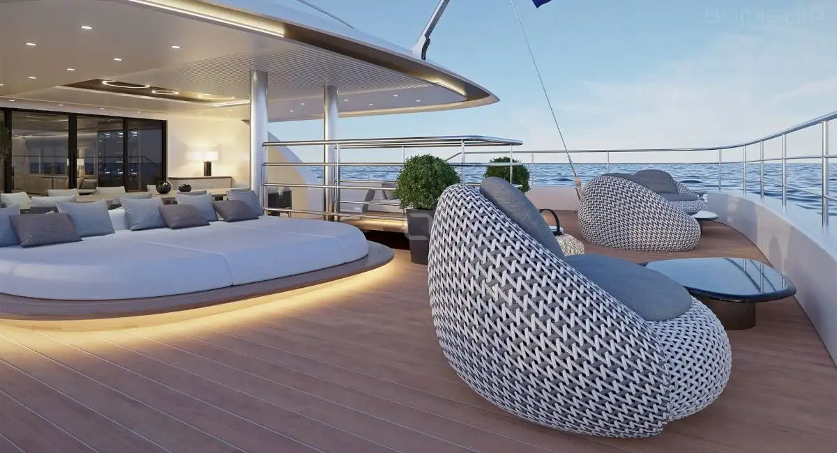 Beach club with Finnish sauna, gym, large bathing platform 20 sqm, teak decks, Kohler generators 2 x 85 kW and Kohler generator 1 x 50 kW, Aircondition, Watermaker Duplex 2 x 300L/h, Sun awnings on all decks, a large sunbathing platform with shower 20sqm, Jacuzzi for six pax, Icemakers x3, Wine coolers in saloon.r Wet bars, Ambient lights, Underwater lights, Outdoor projector for movie night under the stars, sun lounge areas.