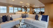• Muted colours with soft furnishings create a warm and spacious feeling throughout the yacht